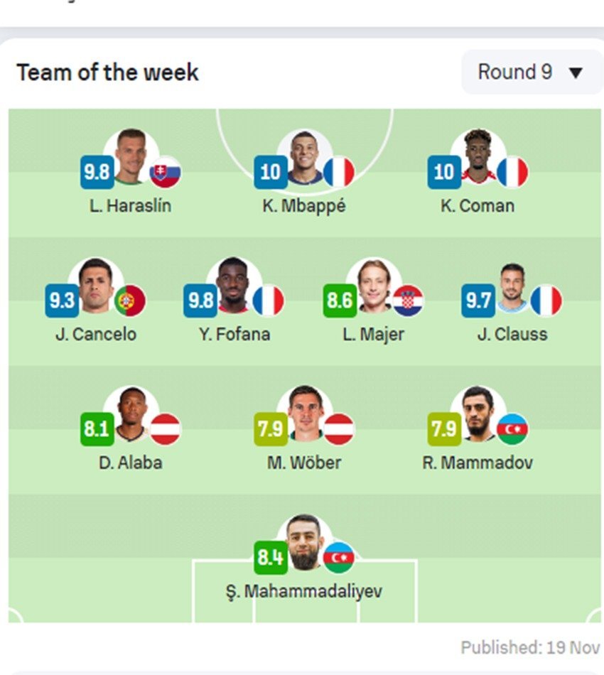 Rəmzi komandada Killian Mbappe, Kinqsli Koman, David Alaba, Joao Kanselo kimi futbolçular yer alıblar.