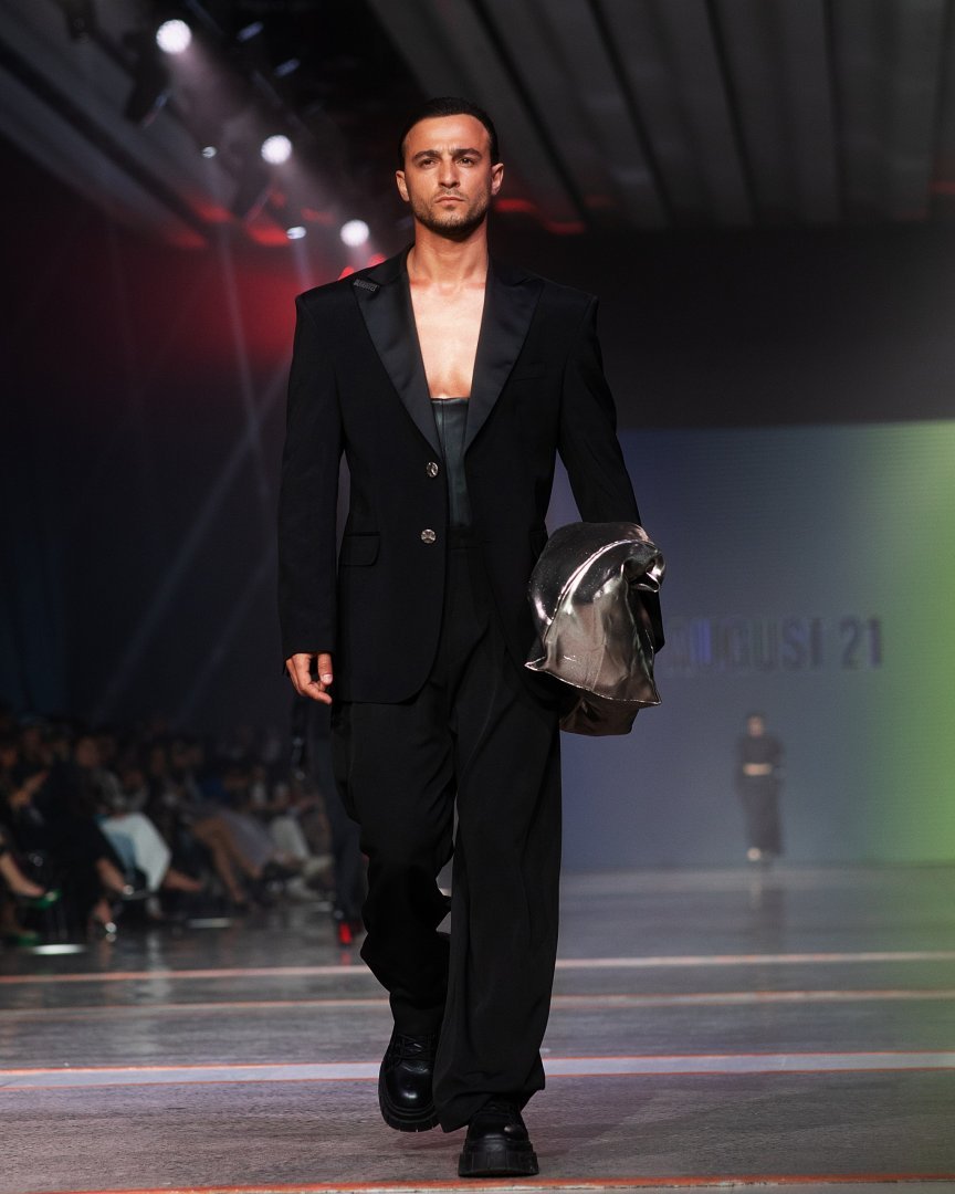 Şounun ikinci gününü debüt kolleksiyasını təqdim edən başqa bir yerli brend - 21 avqust - bağladı. Və yenə də nadir istisnalarla kolleksiyada üstünlük təşkil edən əsas rəng kimi qara seçildi. Korsetlər xüsusilə maraqlı və yalnız gözəl xanımlarda deyil, həm də kişi cinsi nümayəndələrində də görünürdü. Gücləndirilmiş çiyin xətti bütün kolleksiyaya maskulin əhval-ruhiyyəsi bəxş etdi və markanın loqotipi şəklində kəmər tokaları brendin bu texnikadan tez-tez istifadə edən artıq məşhur dünya evləri ilə rəqabət aparmaq niyyətində olduğunu açıq şəkildə göstərirdi.