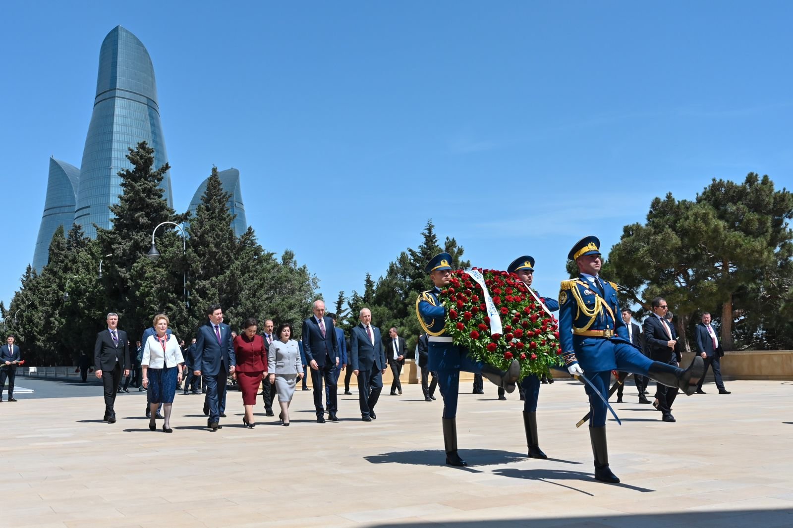 Sonra nümayəndə heyətləri tərəfindən Şəhidlər xiyabanı ziyarət olunub. Azərbaycanın azadlığı və müstəqilliyi uğrunda mübarizədə canlarını qurban vermiş qəhrəman Vətən övladlarının əziz xatirəsi ehtiramla yad edilib, məzarları üzərinə tər güllər düzülüb, "Əbədi məşəl" abidəsinin önünə əklil qoyulub.