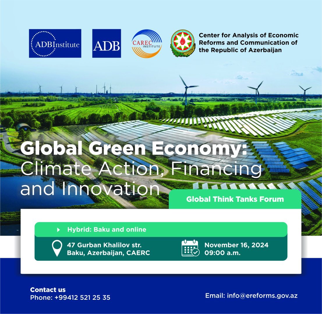 2024-cü il noyabrın 16-da İqtisadi İslahatların Təhlili və Kommunikasiya Mərkəzi (İİTKM), Asiya İnkişaf Bankı (AİB), Asiya İnkişaf Bankı İnstitutu (AİBİ) və Mərkəzi Asiya Regional İqtisadi Əməkdaşlıq Proqramı İnstitutu (CAREC Institute) ilə birgə Qlobal Beyin Mərkəzləri Forumu keçirəcək.