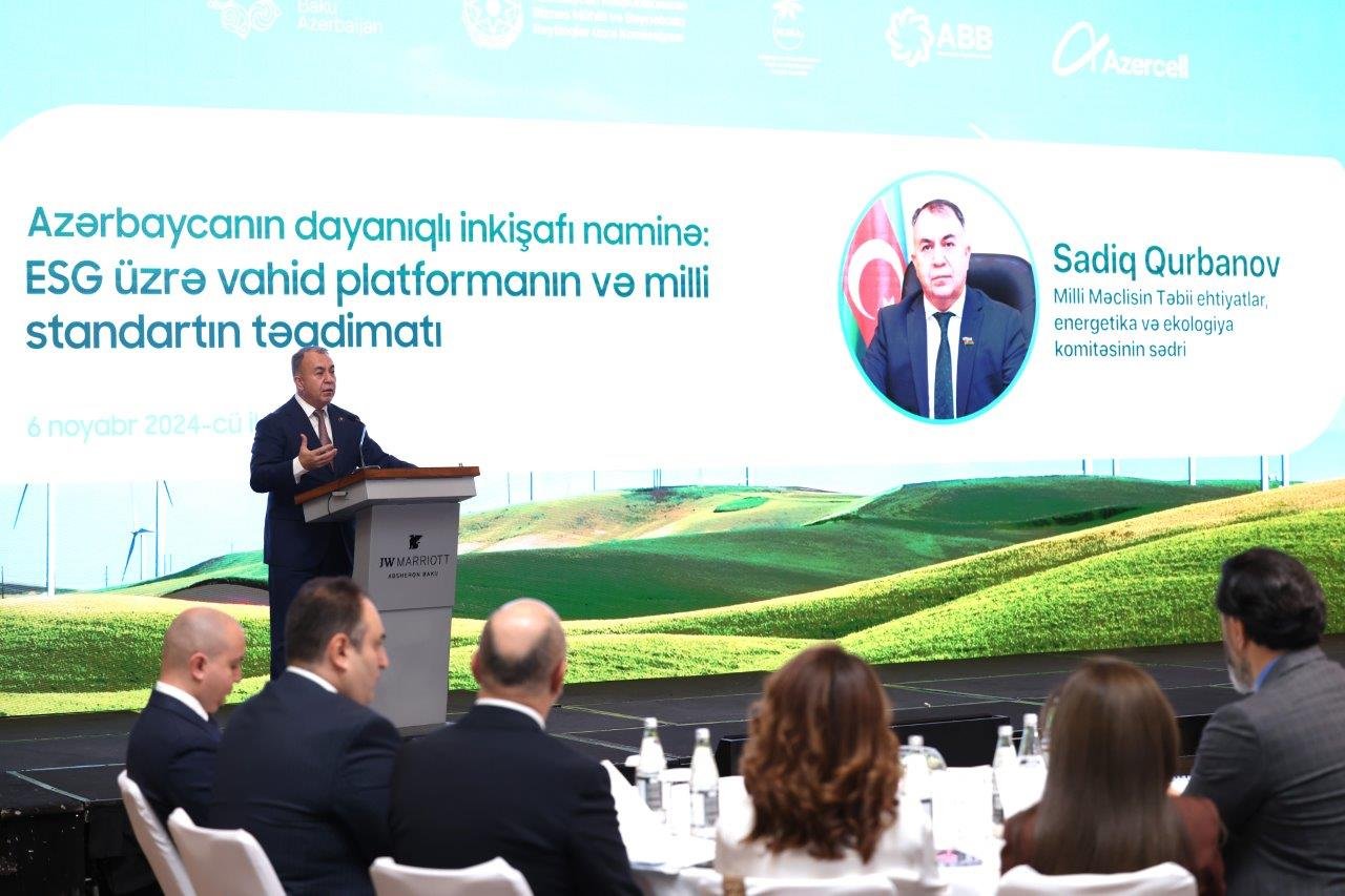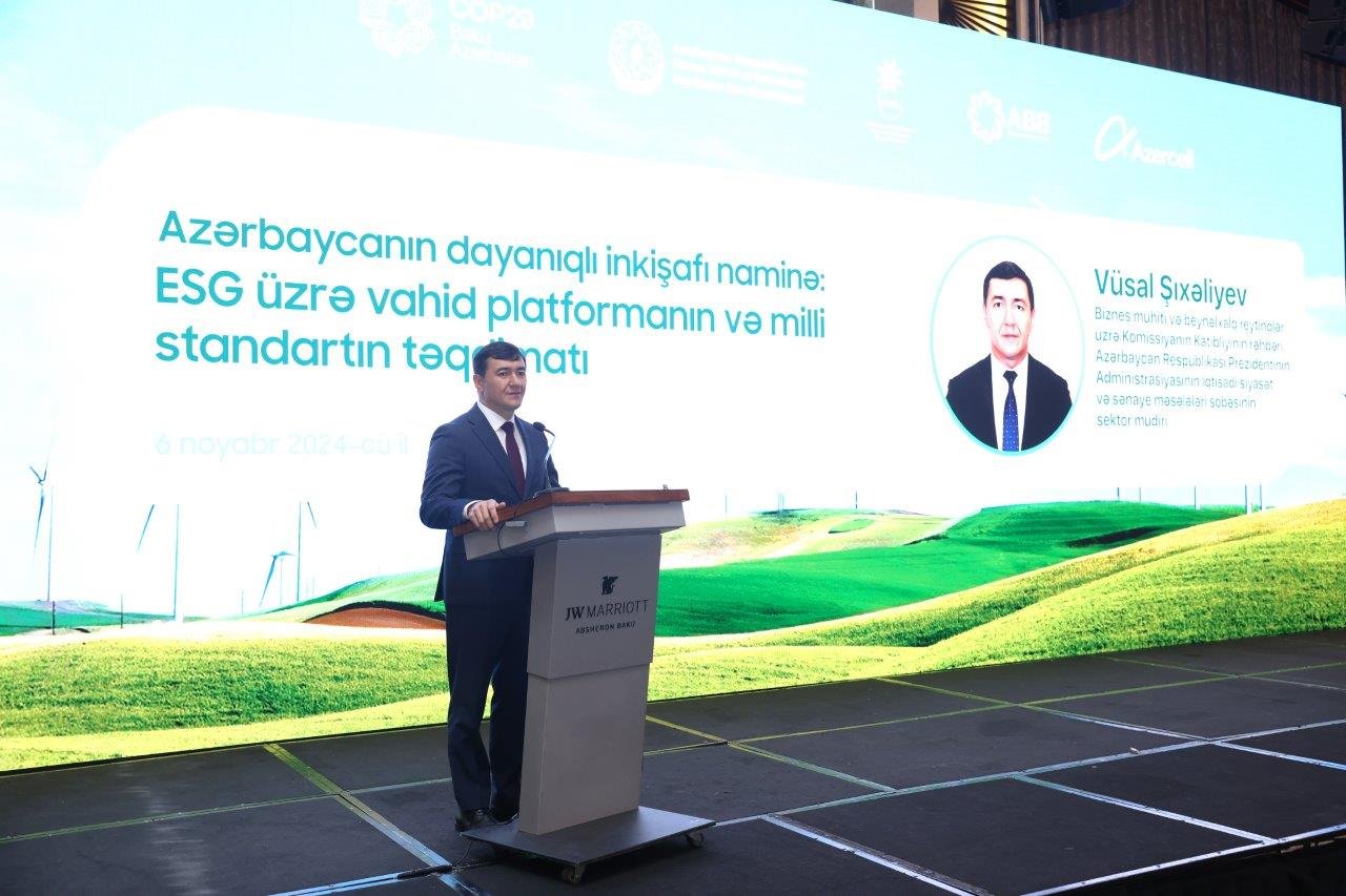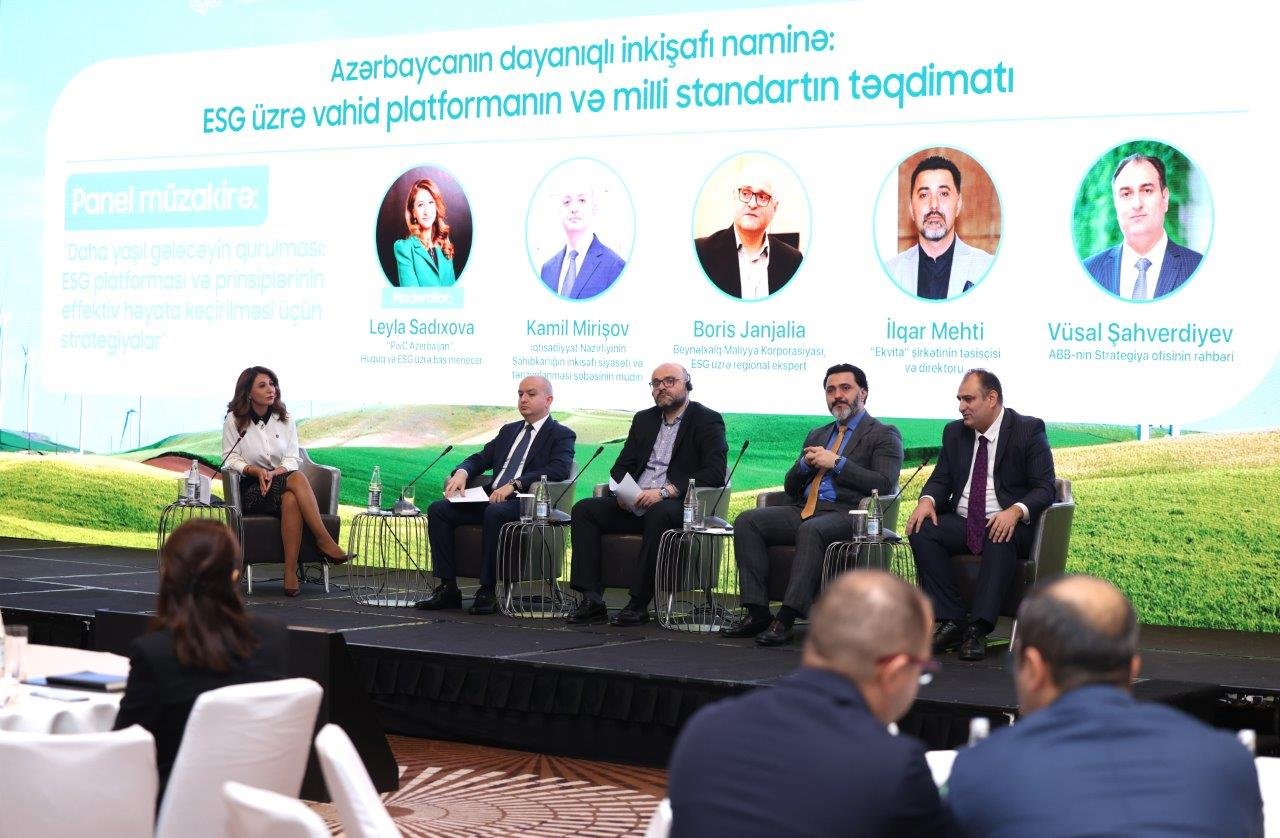 Tədbir çərçivəsində Azərbaycan Respublikası Prezidentinin Administrasiyasının İqtisadi siyasət və sənaye məsələləri şöbəsinin baş məsləhətçisi Gülnaz Cavadova ESG üzrə vahid platformaya (https://esghub.az/) və Azərbaycan Standartlaşdırma İnstitutunun Baş direktoru İlham Bayramov ESG üzrə milli standarta dair təqdimatlarla çıxış edib, BMT Azərbaycanın Tərəfdaşlıq və İnkişaf Məsələləri üzrə məsul şəxsi Ülviyyə Əkbər ESG platformasının ideyası barədə məlumat verib. Vurğulanıb ki, ESG üzrə vahid platforma daima yenilənən və ESG ilə əlaqəli hərtərəfli məlumat və materialları birləşdirən resurs mərkəzi rolunu oynayacaq. Platforma bizneslərin cari vəziyyəti, dayanıqlılığı, ESG hesabatlılığı üzrə indikator və məlumatları təmin etməklə, xarici investorların cəlb edilməsinə xidmət edəcək. Tərəfdaşlar ESG ilə əlaqəli xidmətlərini bu platforma üzərindən biznes subyektlərinə təqdim edə biləcək, bizneslər isə ESG üzrə təcrübəli mütəxəssis və peşəkar şirkətlərə çıxış imkanı əldə edəcəklər. Platforma ətraf mühit və dayanıqlı inkişaf məsələlərinə, beynəlxalq reytinqlərdə ekoloji performansla bağlı göstəricilərə müsbət töhfə verəcək. Azərbaycanın COP29-a ev sahibliyi etməyə hazırlaşdığı ərəfədə istifadəyə verilən ESG üzrə vahid platforma həm də ölkənin ekoloji dayanıqlılığa sadiqliyini bir daha nümayiş etdirir.