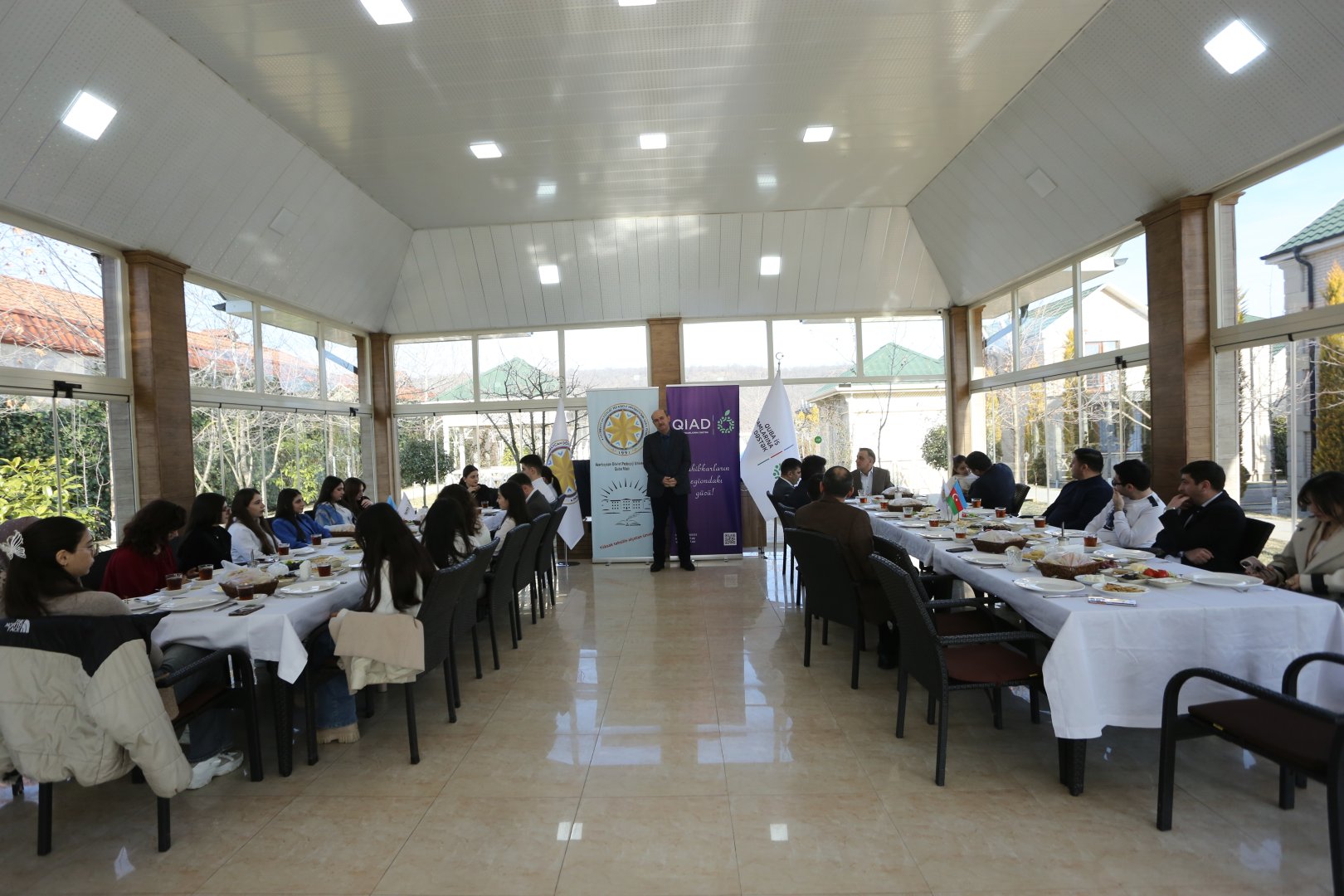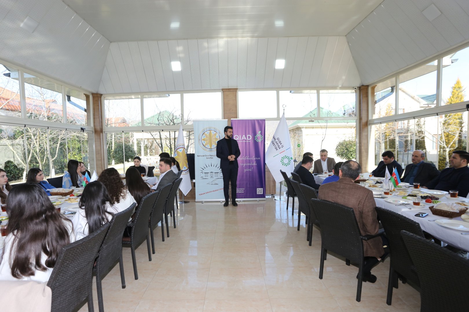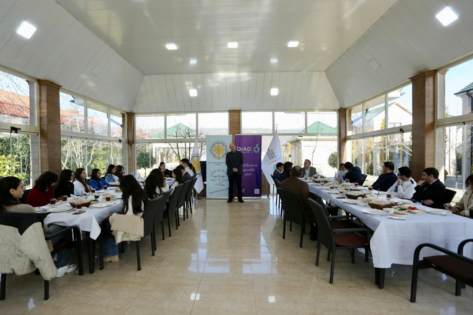 Görüşü QİAD İdarə Heyətinin sədri Cabbar Heybətov giriş nitqi ilə açıb, tələbələri 2 Fevral – Gənclər Günü münasibətilə təbrik edərək qeyd edib ki, gənclər cəmiyyətimizin ən dinamik və yenilikçi qüvvəsi kimi ölkəmizin inkişafında əhəmiyyətli rol oynayır. Ulu Öndər Heydər Əliyevin 1997-ci ildə imzaladığı fərman ilə bu gün əlamətdar günə çevrilmişdir və hər il fevral ayının 2-i Azərbaycan Gəncləri Günü kimi qeyd olunur. Hazırda ölkəmizdə gənclər siyasəti uğurla həyata keçirilir. Sosial həyatın bütün sferalarına nəzər salsaq, görərik ki, orada gənclər əksəriyyət təşkil edir. Təbii ki, bu, Prezident İlham Əliyevin gənc kadrların irəli çəkilməsi ilə bağlı qarşıya qoyduğu vəzifənin reallaşmasının nəticəsidir.