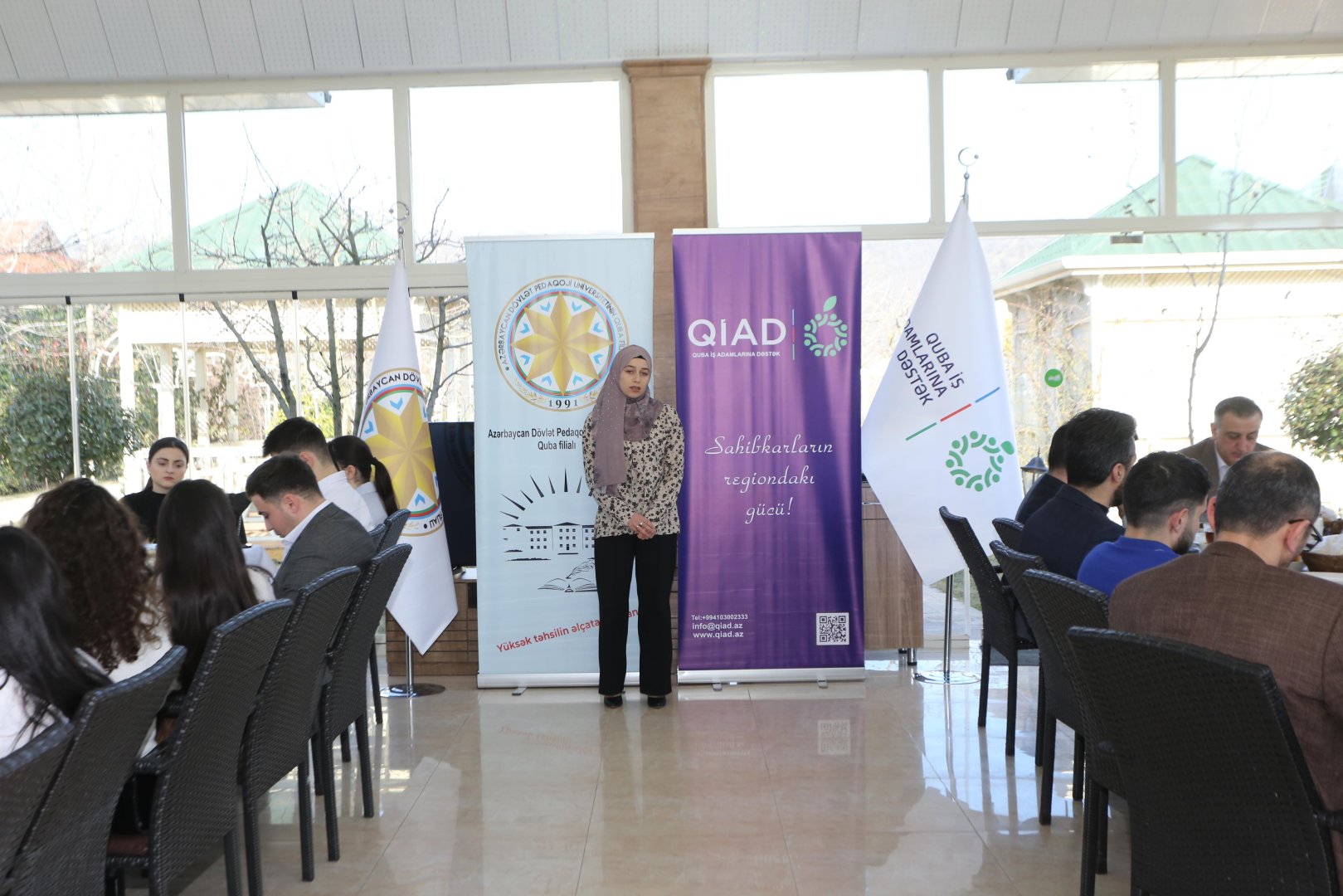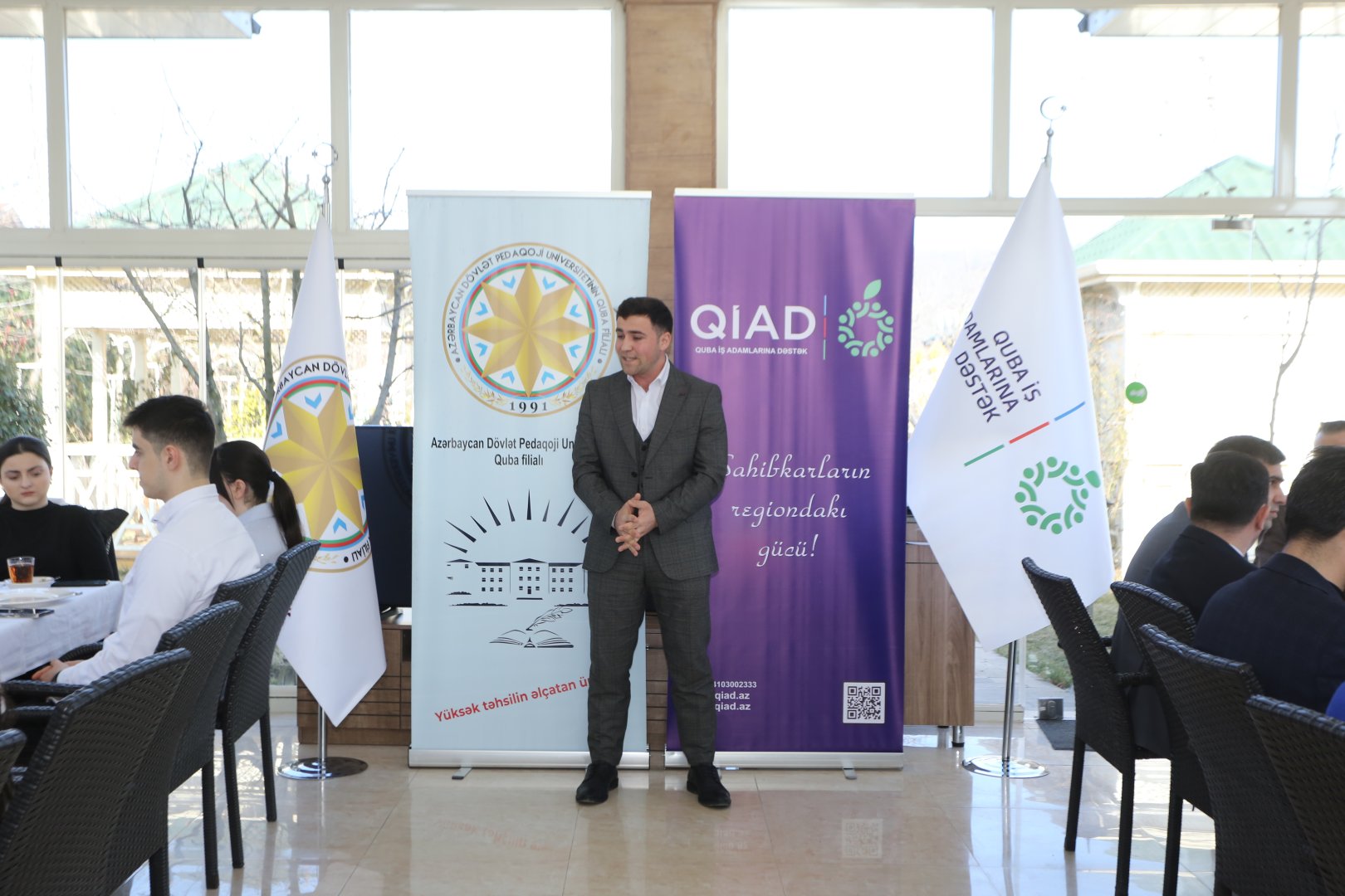 Quba İş Adamlarına Dəstək- QİAD platformasının və Azərbaycan Dövlət Pedaqoji Universitetinin (ADPU) Quba filialının təşkilatçılığı ilə 2 Fevral – Azərbaycan Gəncləri Gününə həsr olunmuş “Azərbaycan gəncləri: birlikdə daha güclü” adlı tədbir keçirilib.
