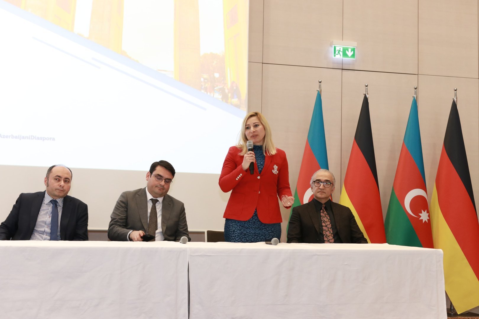Diasporla İş üzrə Dövlət Komitəsinin sədri Fuad Muradov Prezident İlham Əliyevin rəhbərliyi ilə uğurla inkişaf edən diaspor siyasəti barədə məlumat verib, xaricdəki Azərbaycan icmalarının, diaspor təşkilatlarının, o cümlədən Almaniya Azərbaycanlıları Alyansının diaspor fəaliyyətinə verdiyi töhfələri yüksək qiymətləndirib.