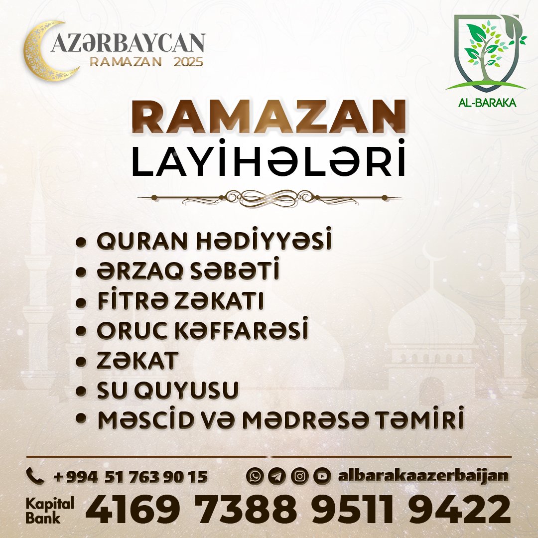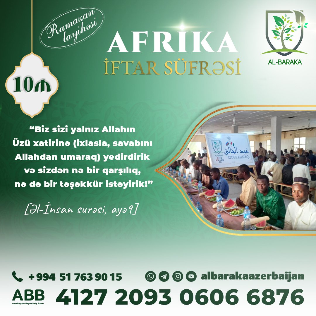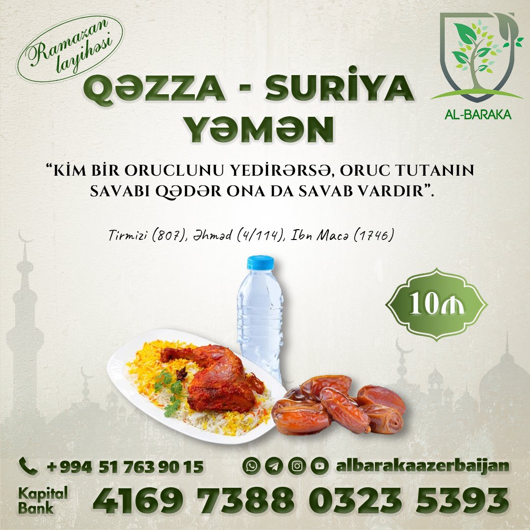"Al Baraka Azerbaijan Könüllüləri" bu xeyirxah missiyaya hər kəsi qoşulmağa, paylaşmağa və ehtiyacı olan insanların duasında yer almağa dəvət edir.