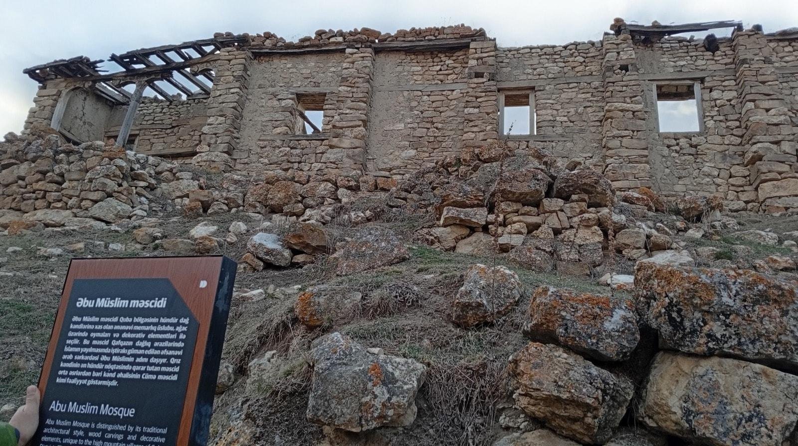 Diqqətinizə çatdırmaq istəyirəm ki, Əbu Müslüm məscidinin qarşısında tanıtım lövhəsi qoyulsa da, çox təəssüf ki, məscidin sadəcə divarları qalıb və dirəkləri isə uçub. Buna görə də tarixi məscidin bərpasına çox gərək var. Məscidin nəfis naxışlarla bəzədilmiş taxtaları isə kəndin ərazisi boyunca səpələnib.