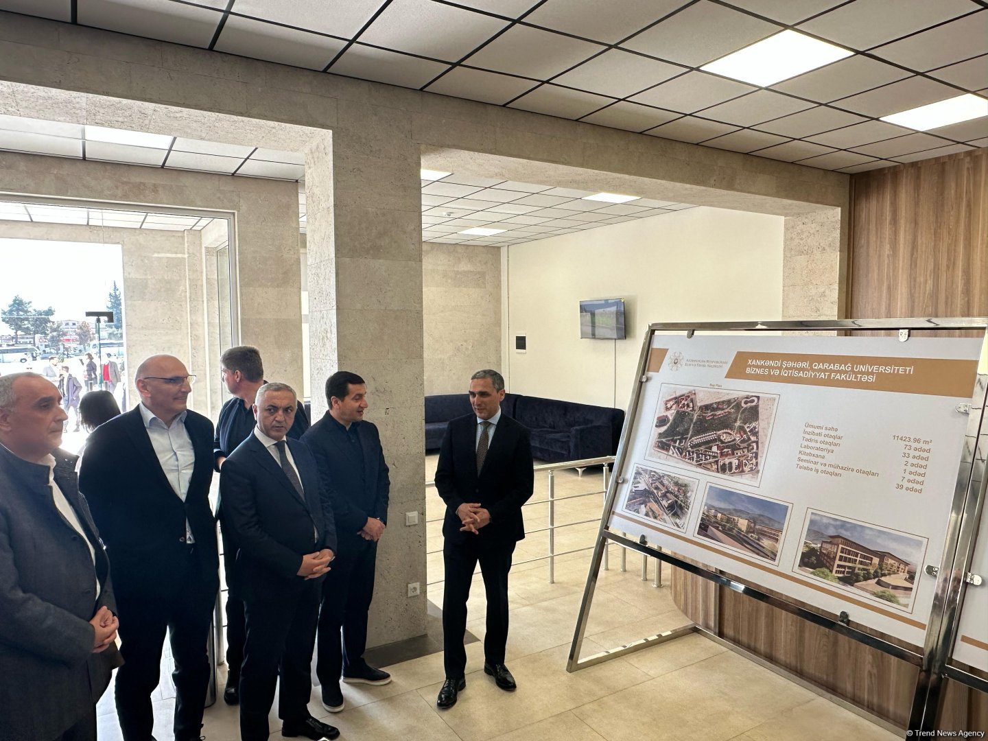 Burada onları Xankəndi şəhərində, Ağdərə və Xocalı rayonlarında Azərbaycan Respublikası Prezidentinin xüsusi nümayəndəsi Elçin Yusubov və Qarabağ Universitetinin rektoru Şahin Bayramov qarşılayıb.