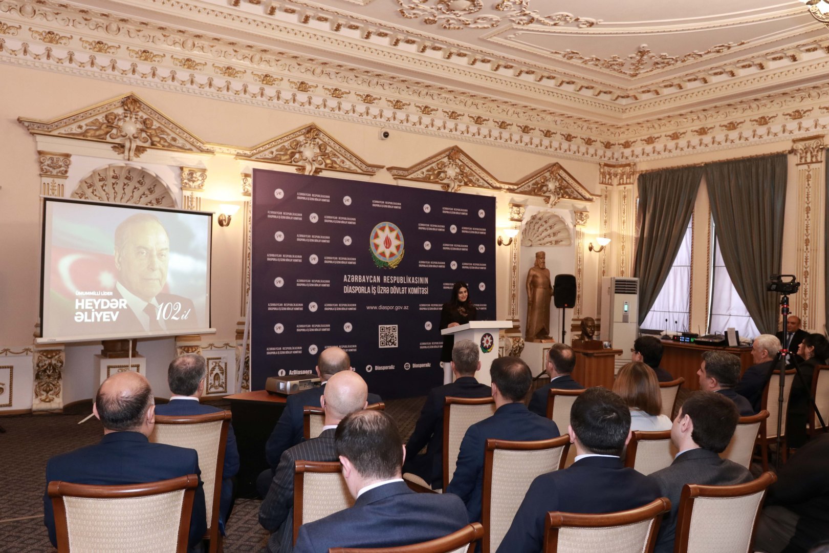 Diasporla İş üzrə Dövlət Komitəsindən TurkicWorld-ə verilən məlumata görə, Komitədə Ümummilli Liderin anadan olmasının 102-ci ildönümünə həsr olunan tədbir Azərbaycan Respublikasının Dövlət Himninin səsləndirilməsi və Ulu Öndər Heydər Əliyevin, eləcə də şəhidlərimizin əziz xatirəsinin bir dəqiqəlik sükutla yad edilməsi ilə başlayıb.