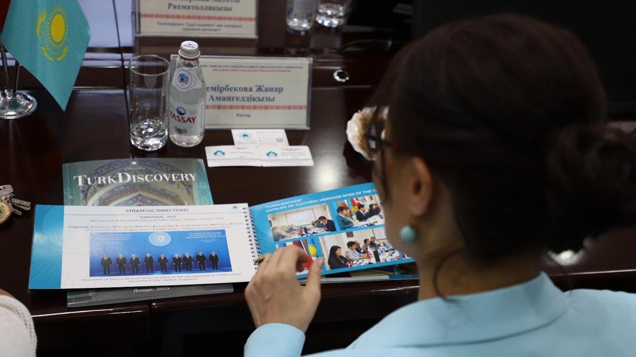 TurkicWorld xəbər verir ki,səfər çərçivəsində Universitetin rektoru Janar Temirbekova ilə görüş baş tutub. Görüş zamanı tərəflər elmi tədqiqatlar, türk mənəvi və mədəni irsinin qorunması və tanıdılması, eləcə də tarix, türkologiya və mədəni diplomatik mütəxəssis hazırlığı istiqamətində əməkdaşlığın dərinləşdirilməsi imkanlarını müzakirə ediblər.