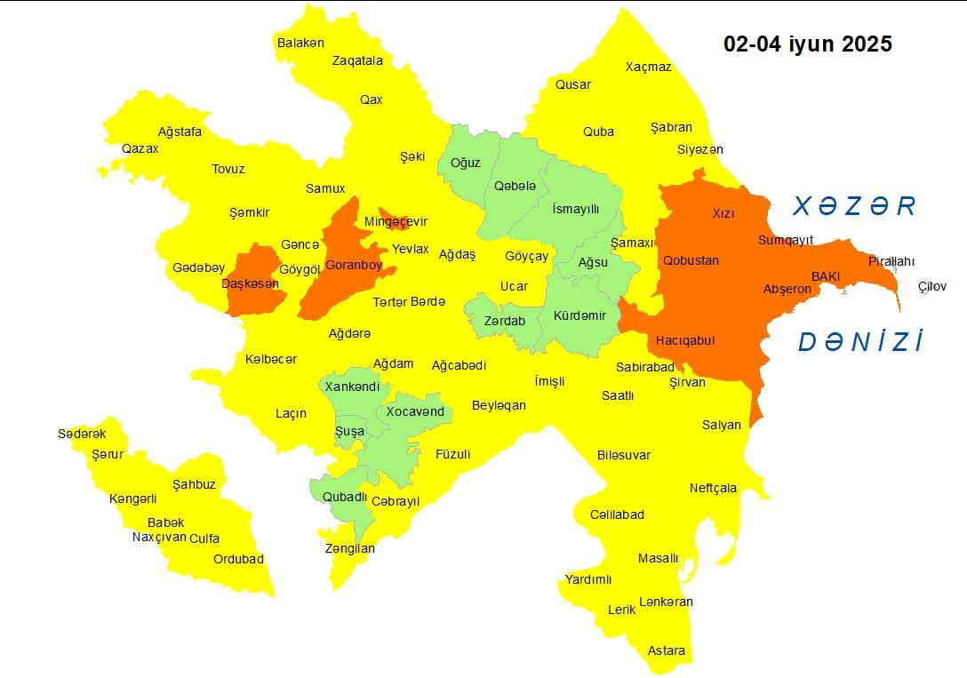 Milli Hidrometeorologiya Xidməti iyunun 2-si gündüzdən 4-ü gündüzədək Bakıda və Abşeron yarımadasında, eyni zamanda bəzi bölgələrdə gözlənilən küləkli hava şəraiti ilə bağlı sarı və narıncı xəbərdarlıq verib.