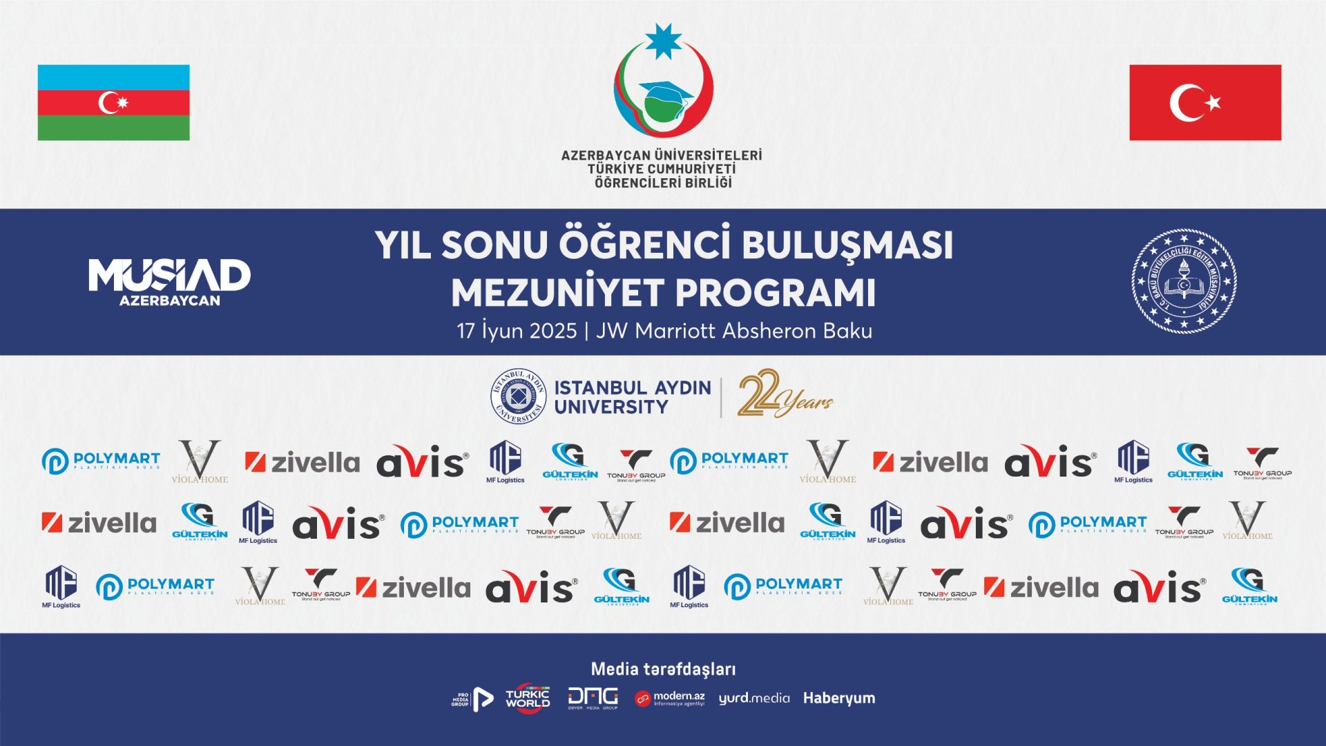 Tədbir MÜSİAD Azərbaycan ictimai birliyi və Türkiyə Cümhuriyyətinin Bakı səfirliyinin təhsil müşavirliyinin tərəfdaşlığı ilə, eyni zamanda Türkiyənin Aydın Universitetinin və 6 şirkətin sponsorluğu ilə keçirilib.