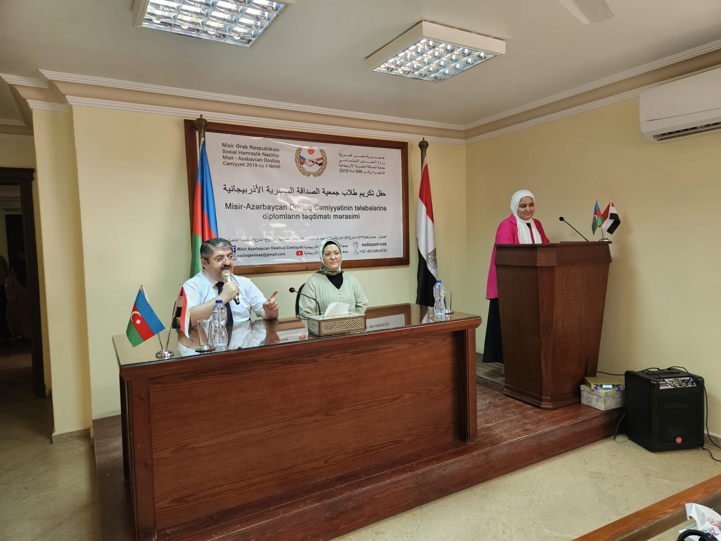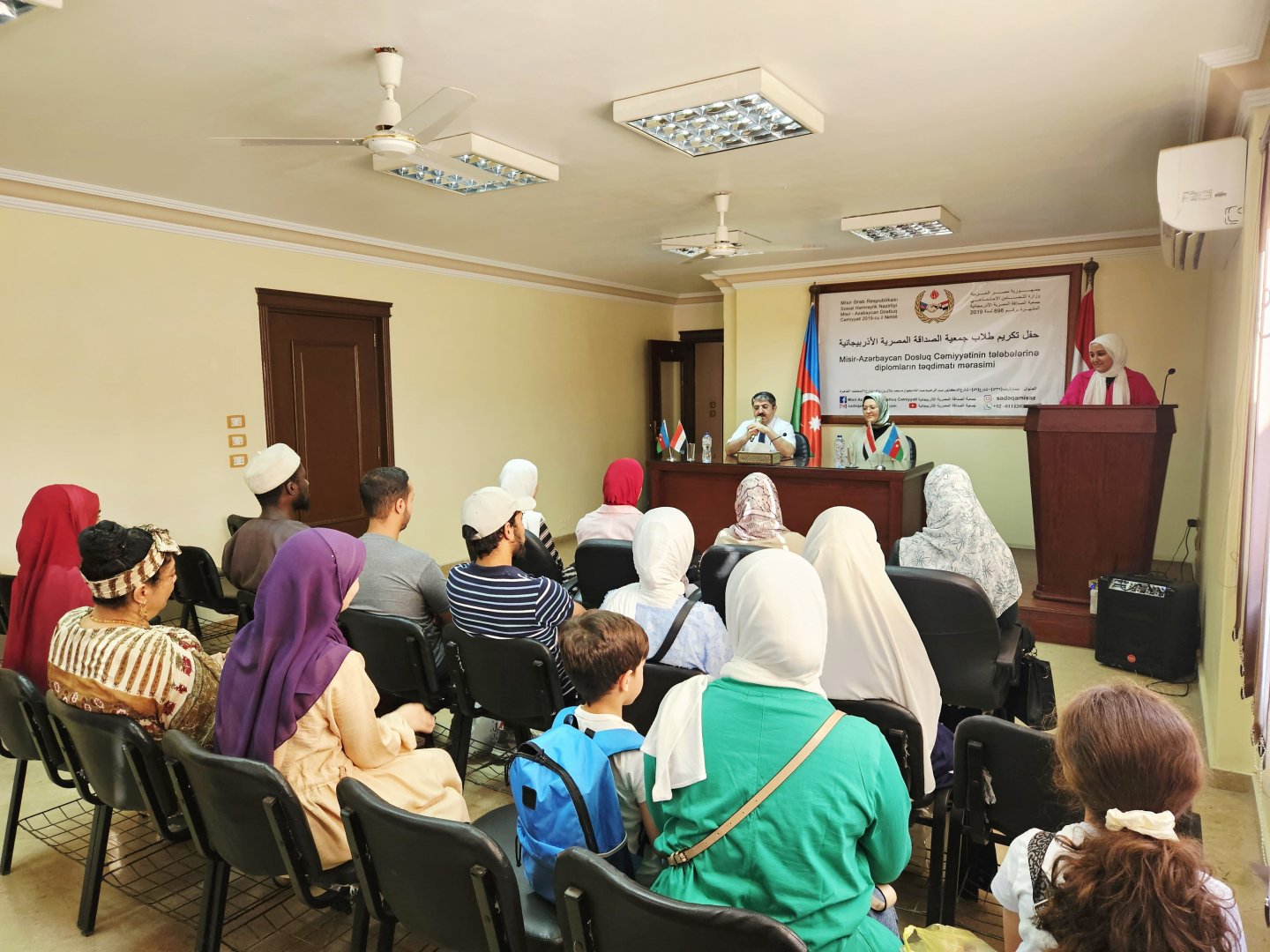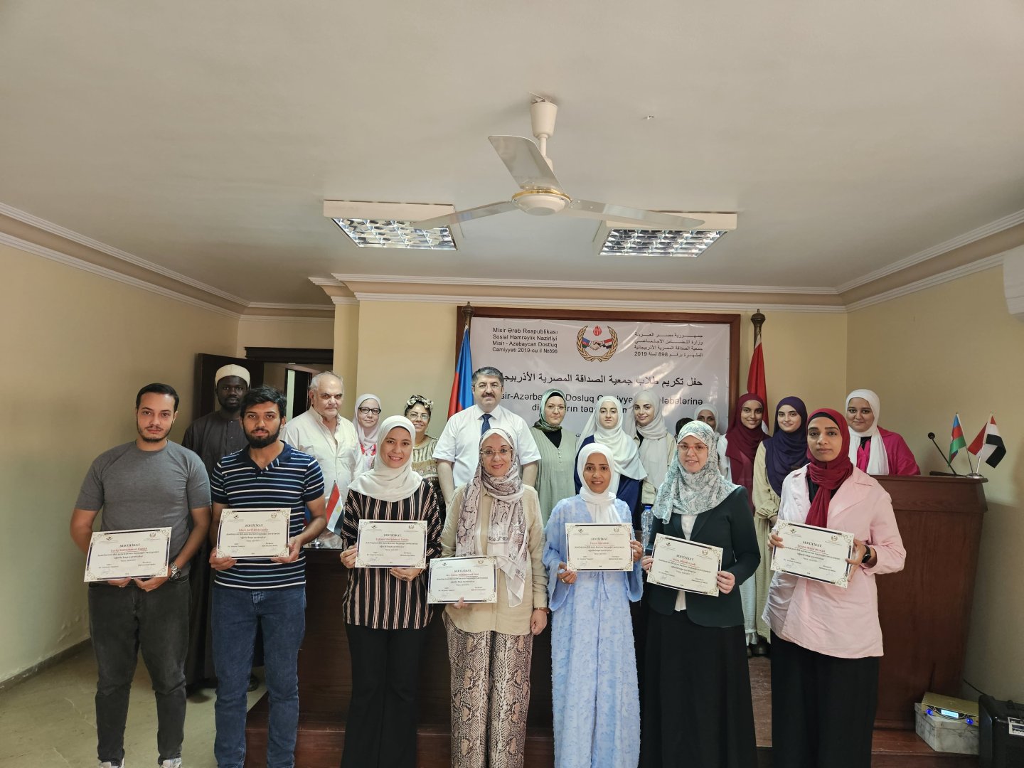 Misir-Azərbaycan Dostluq Cəmiyyətində Azərbaycan dili kurslarında təhsil alan tələbələrə diplomların təqdim edilməsi mərasimi keçirilib.
