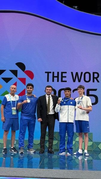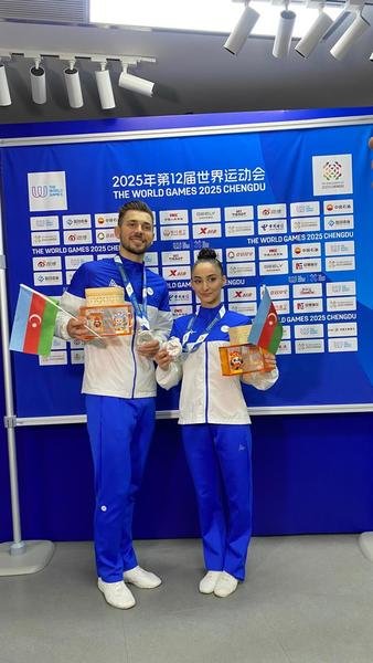 Aerobika gimnastikası üzrə Dünya çempionları, qarışıq cütlük Mədinə Mustafayeva və Vladimir Dolmatov da 19.750 xalla gümüş medalın sahibi olublar.