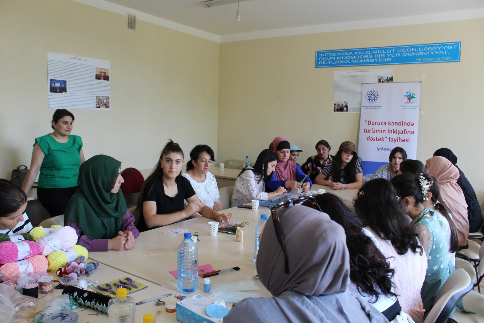 "Əlilliyi olan şəxslərə sosial dəstək" İctimai Birliyi, Azərbaycan Respublikasının Dövlət Turizm Agentliyinin maliyyə dəstəyi ilə “Duruca kəndində turizmin inkişafına dəstək” layihəsi çərçivəsində Qəbələ rayonunda yaşayan sosial vəziyyəti ağır olan xanımlara əl işlərinin öyrədilməsi məqsədilə təşkil etdiyi təlimləri uğurla tamamlayıb. Bu təlimlər iştirakçılara yeni bacarıqlar qazandırmaq və onların iqtisadi müstəqilliklərini artırmaq məqsədini güdüb.
