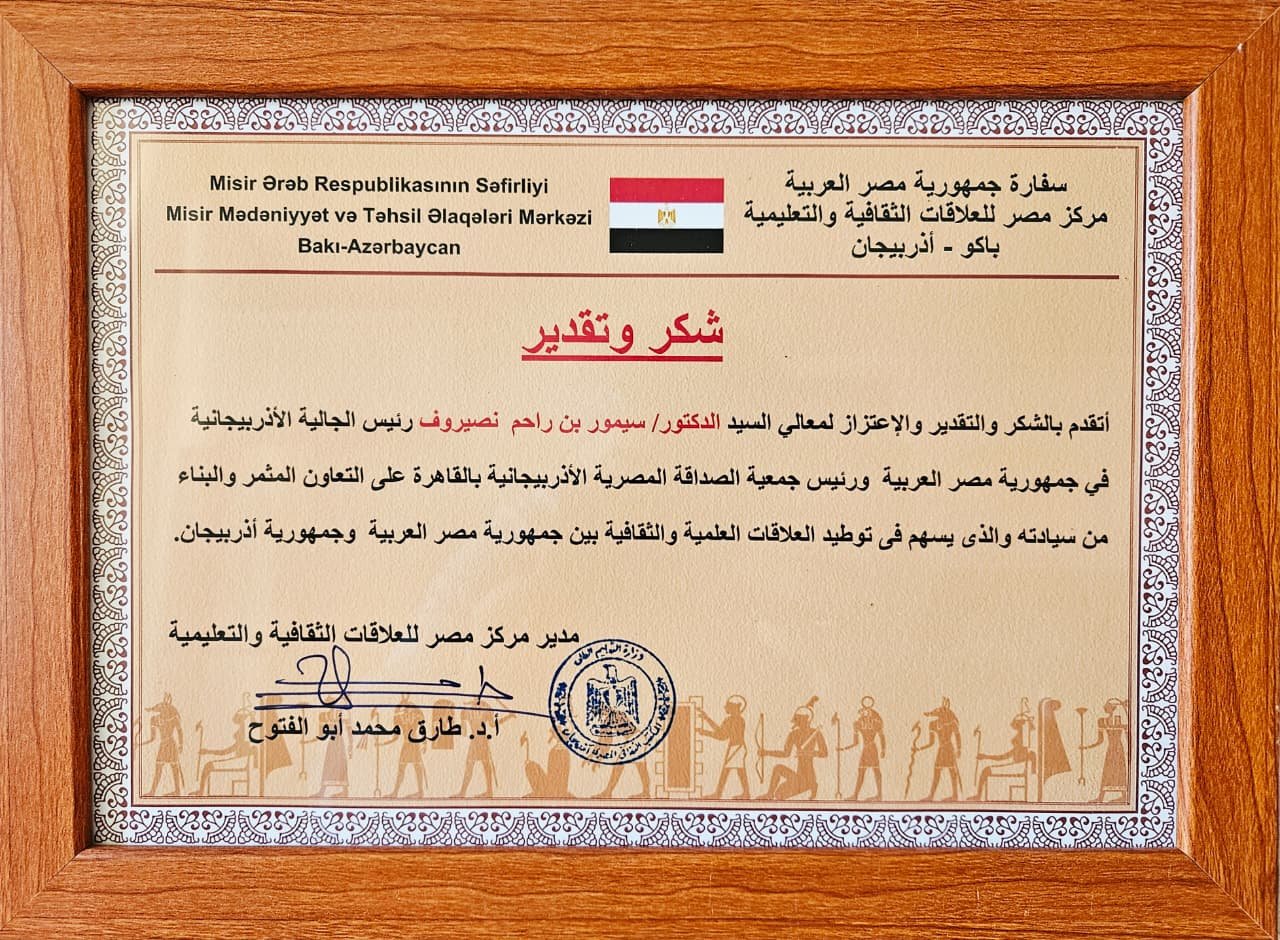Azərbaycanlı tədqiqaçı-alim Seymur Nəsirov Misir Ərəb Respublikası ilə Azərbaycan Respublikası arasında elmi - mədəni əlaqələrin inkişafında xidmətlərinə görə Misir Təhsil Nazirliyinin medalı ilə təltif olunub.