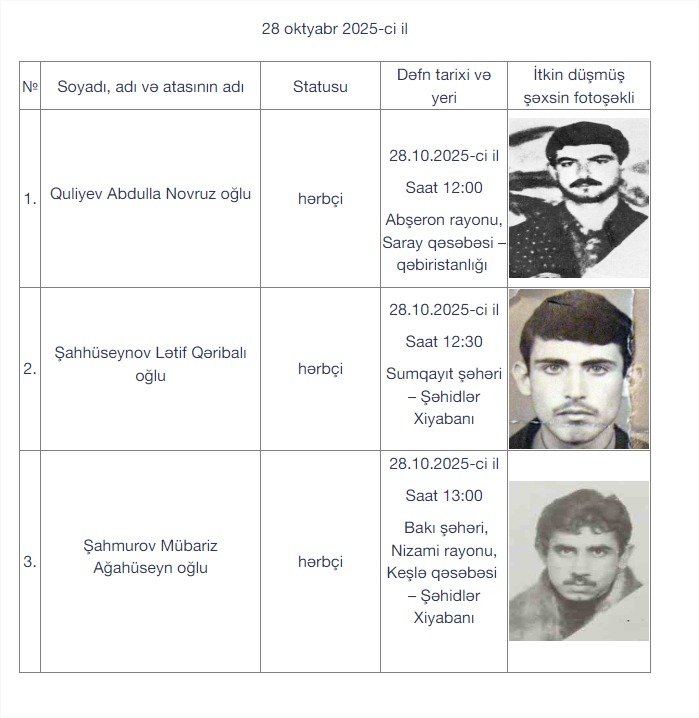I Qarabağ müharibəsinin daha 16 itkin-şəhidinin qalıqları dəfn olunacaq.
