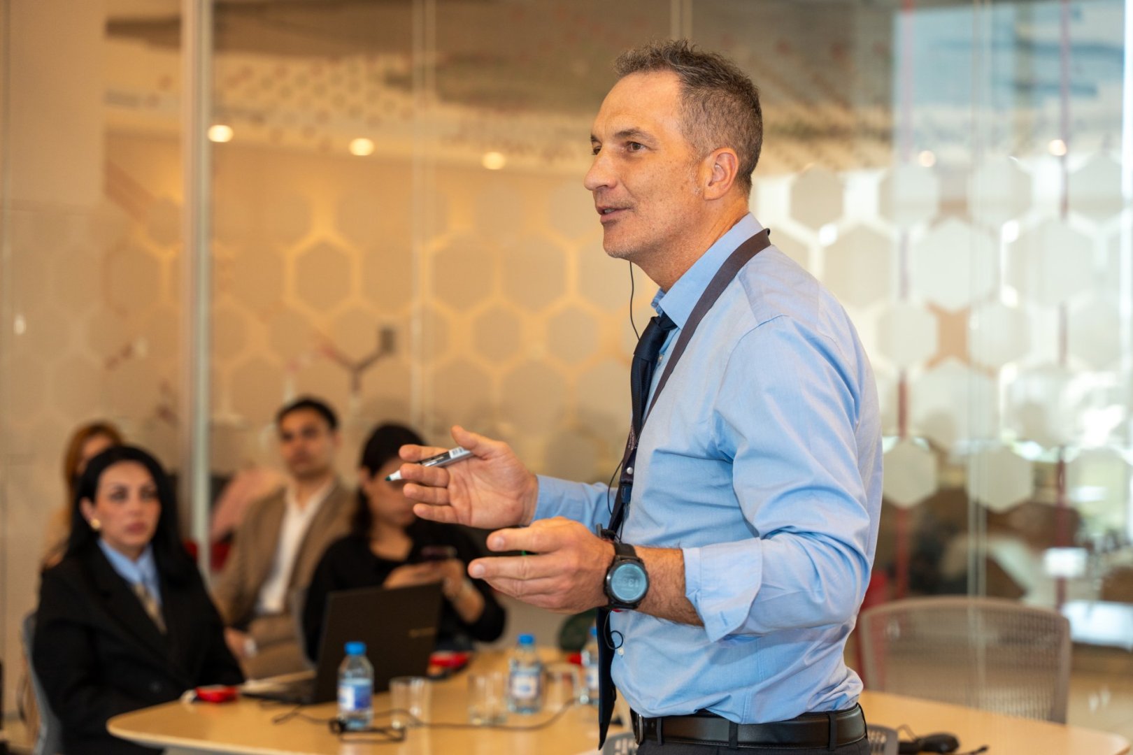 Təlimçi qismində çıxış edən Rəqəmsal marketinq və kütləvi kommunikasiyalar sahəsi üzrə dosent, Neyroelmlər Laboratoriyasının rəhbəri, tanınmış alim Dr. Nikolas Hamelin "Giriş və mediada süni intellekt inqilabı", "Məlumatların skreypinqi: İctimai məlumatlandırmada data analitikası", "Süni intellekt ilə idarə olunan brend və məhsul təqdimatı", "Big Data" və generativ süni intellekt vasitəsilə cəlbedici media məzmununun yaradılması", "Strateji inteqrasiya və gələcəyə baxış" adlı modullar ətrafında iştirakçılarla fikir mübadiləsi aparıb. Müzakirələr zamanı vurğulanıb ki, süni intellektin mediada tətbiqi informasiya istehsalında operativliyi artırmaqla yanaşı, etik yanaşma və məsuliyyətli informasiya siyasətini ön plana çıxarır.