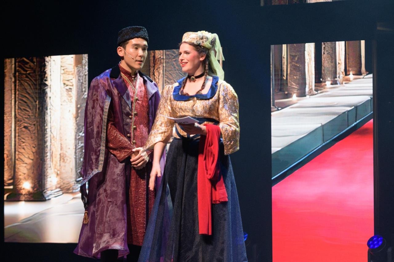Daha sonra tamaşa nümayiş olunub. Alman dilində təqdim edilən tamaşa tanınmış rejissor Rita Serayniq və dirijor, bəstəkar Maykl Şnakın bədii rəhbərliyi altında tamamilə yerli yaradıcı heyətin iştirakı ilə hazırlanıb. Səhnə rəssamı və vizual elementlərin dizayneri Kristian Ariel Heredia, geyim rəssamı Vüsal Rəhim, xoreqrafı Suzanne Rietsdir.
