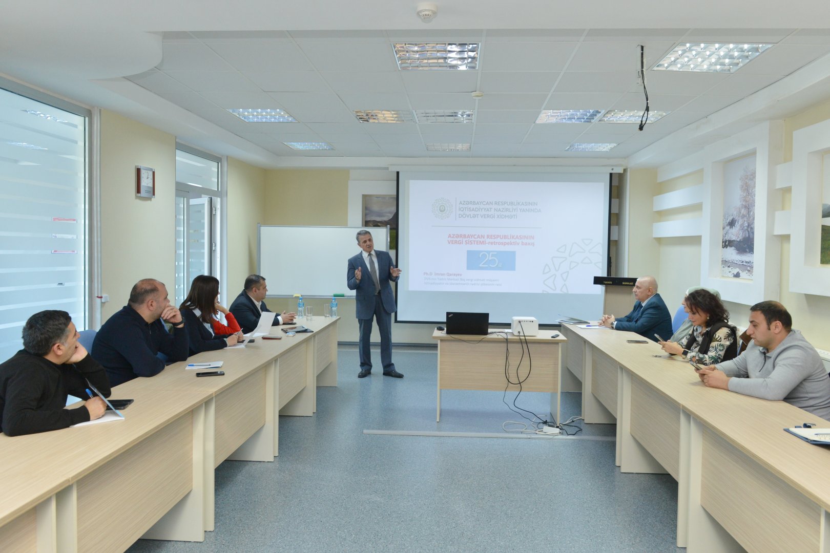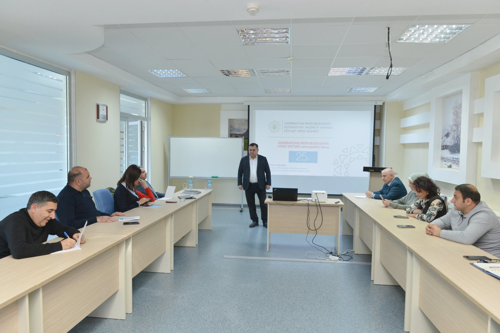 Təlim çərçivəsində Tədris Mərkəzinin şöbə rəisi İmran Qarayev və Vergi siyasəti baş idarəsinin şöbə rəisi Niyaz Şükürov tərəfindən təqdimatlar keçirilib. Çıxışlarda 2000–2025-ci illərdə vergi sisteminin institusional inkişaf mərhələləri, elektron xidmətlərin formalaşması, vergi inzibatçılığında şəffaflıq və səmərəliliyin artırılması istiqamətində görülən işlər, həmçinin “Dövlət Vergi Xidmətinin 2025–2028-ci illər üzrə Strategiyası”nın əsas hədəfləri diqqətə çatdırılıb. Təlim iştirakçıları vergi orqanları ilə media arasında qarşılıqlı əməkdaşlığın gücləndirilməsi, ictimaiyyətin düzgün məlumatlandırılması və vergi mədəniyyətinin təşviqi mövzularında da fikir mübadiləsi aparıblar.