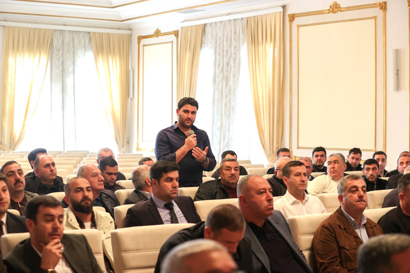Sonra görüşdə iştirak edən sahibkarların təklifləri dinlənilib, meyvə-tərəvəz məhsullarının satışına, emal müəssisələrinin yaradılmasına, kənd təsərrüfatı məhsullarının saxlanması üçün kiçik həcmli soyuducuların alınmasına və arıçılıq təsərrüfatı üçün torpaq sahəsinin icarəyə götürülməsinə dəstək, aqroturizm, suvarma, tingçilik, infrastruktur məsələləri və s. ilə bağlı müzakirələr aparılıb, biznes subyektlərinin sualları cavablandırılıb.