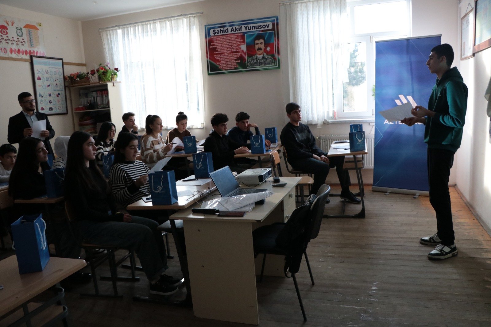 Təlimdə “Aztelekom”un mütəxəssisləri tərəfindən şagird və müəllim heyətinə şəxsi məlumatların qorunması, sosial şəbəkələrdə davranış qaydaları, onlayn təhlükələrdən qorunma üsulları və məsuliyyətli internet istifadəsi mövzularında məlumatlar təqdim olunub.