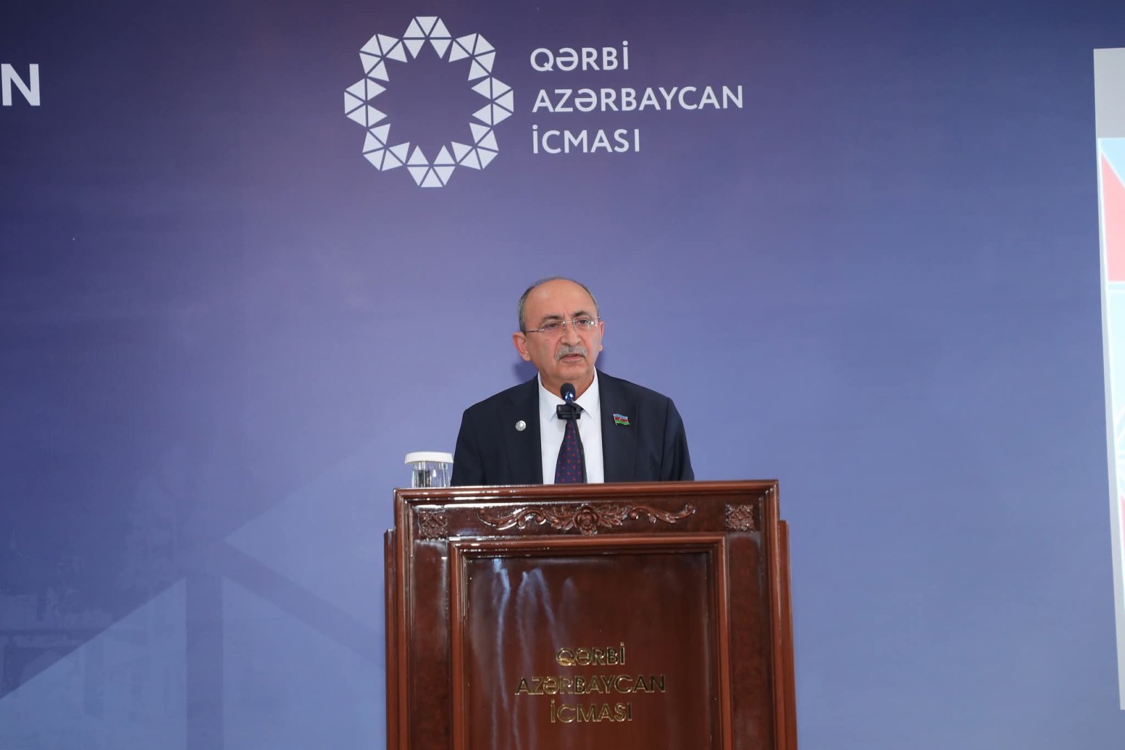 Ümumi Yığıncaqda məruzə ilə çıxış edən Azərbaycan Respublikası Prezidentinin Administrasiyasının Siyasi partiyalar və qanunvericilik hakimiyyəti ilə əlaqələr şöbəsinin müdiri, professor Ədalət Vəliyev ilk dəfə Ulu Öndər Heydər Əliyev tərəfindən siyasi protokola daxil edilən Qərbi Azərbaycan məsələsinin Prezident İlham Əliyevin qətiyyəti nəticəsində dövlət siyasətinin prioritet istiqamətlərindən birinə çevrildiyini qeyd edib. Administrasiya rəsmisi 2022-ci il 24 dekabr tarixində Prezident İlham Əliyevin Qərbi Azərbaycan İcmasının binasında Qərbi Azərbaycan əsilli ziyalıların bir qrupu ilə görüşünün tarixi hadisə olduğunu və bu görüşün Qərbi azərbaycanlıların təhlükəsiz və ləyaqətli şəkildə, sülh yolu ilə öz doğma torpaqlarına qayıtmaq inamını daha da möhkəmləndirdiyini bildirib. Prezident İlham Əliyevin cari ildə müxtəlif platformalarda 9 dəfə Qərbi Azərbaycan məsələsinə xüsusi diqqət ayırmasını, eləcə də noyabr ayında AMEA-nın 80 illik yubileyi çərçivəsində ziyalılar qarşısında çıxışı zamanı səsləndirdiyi fikirlərin Qərbi Azərbaycan məsələsi ilə bağlı yeni mərhələnin başlanğıcı olduğunu ifadə edib. Ə.Vəliyev Prezident İlham Əliyevin tapşırığı ilə Qərbi Azərbaycan İcması tərəfindən qəbul edilmiş Qərbi Azərbaycana sülhsevər qayıdışın konseptual əsası olan Qərbi Azərbaycana Qayıdış Konsepsiyasının İcmanın fəaliyyətinin əsasını təşkil etdiyini, bu konsepsiyaya uyğun olaraq ölkə daxilində və xaricdə genişmiqyaslı işlər görüldüyünü ifadə edib.