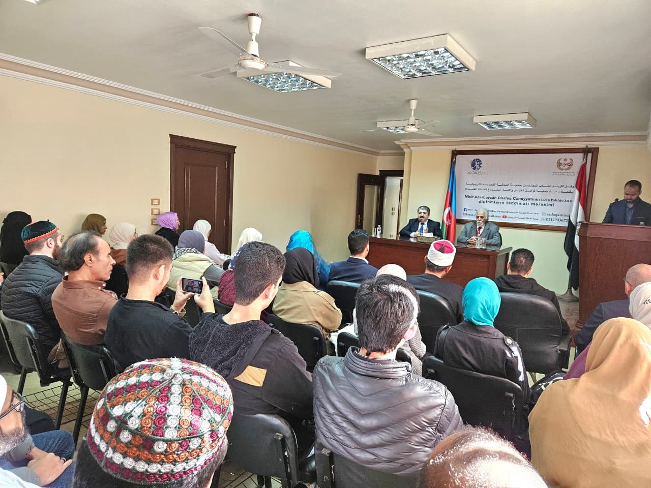 Misir-Azərbaycan Dostluq Cəmiyyətində Azərbaycan dili və digər kurslarda təhsil alan tələbələrə diplomların təqdim edilməsi mərasimi keçirilib.