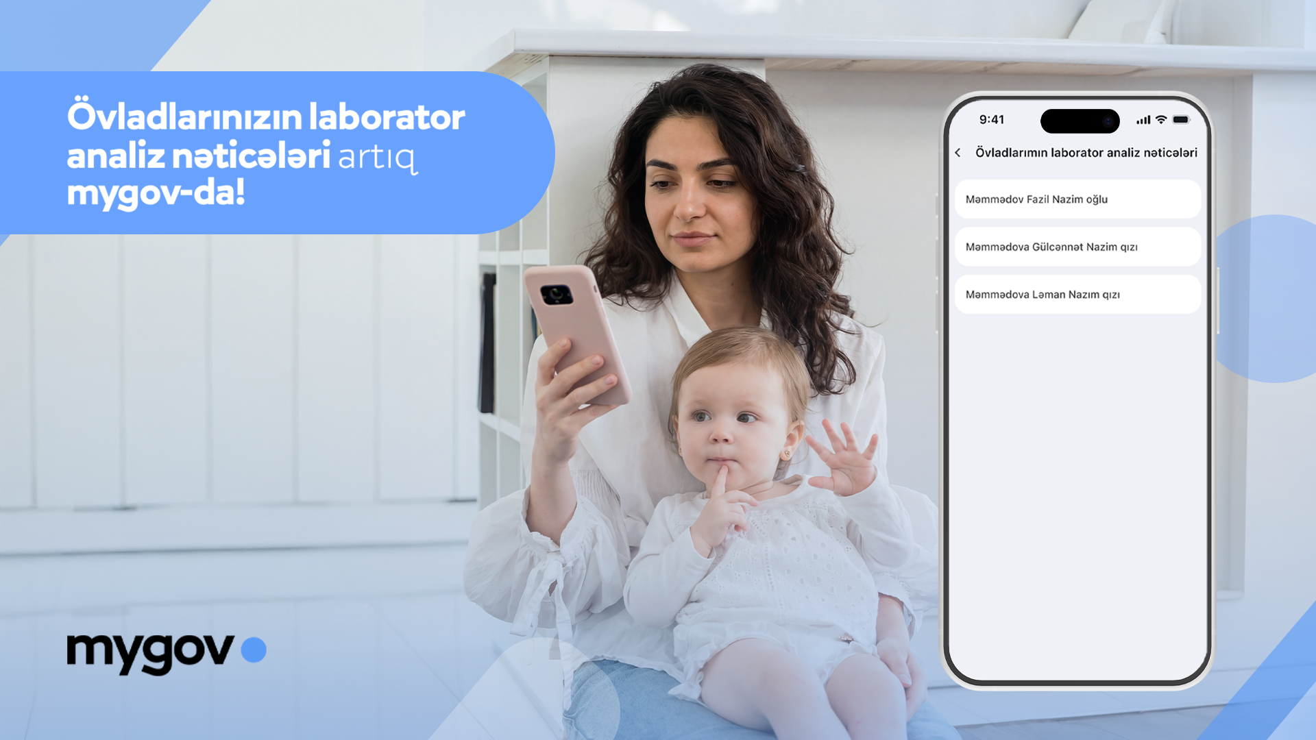 "mygov" rəqəmsal hökumət platforması vətəndaşlara aid məlumat və sənədlərə rahat çıxış imkanı yaratmaq məqsədilə daha bir yenilik təqdim edir. Artıq valideynlər 18 yaşdan kiçik övladlarının laborator analiz nəticələrini birbaşa "mygov" üzərindən rəqəmsal formada əldə edə bilərlər.