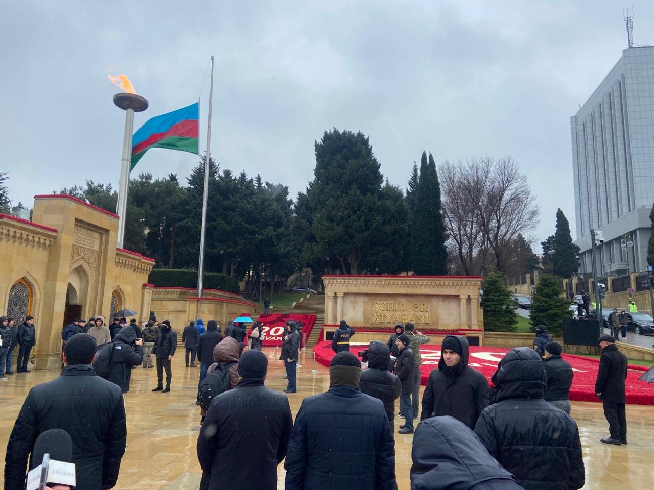 TurkicWorld xəbər verir ki, səhər saatlarından başlayaraq Şəhidlər xiyabanında izdiham yaşanır, şəhid məzarları üzərinə qərənfillər düzülüb.