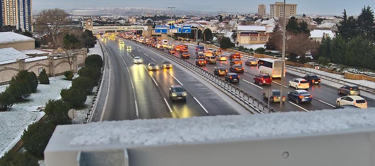 "Hazırda Aeroport şosesi mərkəz istiqamətində yolun buz bağlaması səbəbindən nəqliyyatın hərəkəti çətinləşib. Sürücülərdən qəzaların baş verməməsi üçün hərəkət zamanı sürət həddinə əməl etmələri və düzgün ara məsafəsi saxlamaları xahiş edilir."