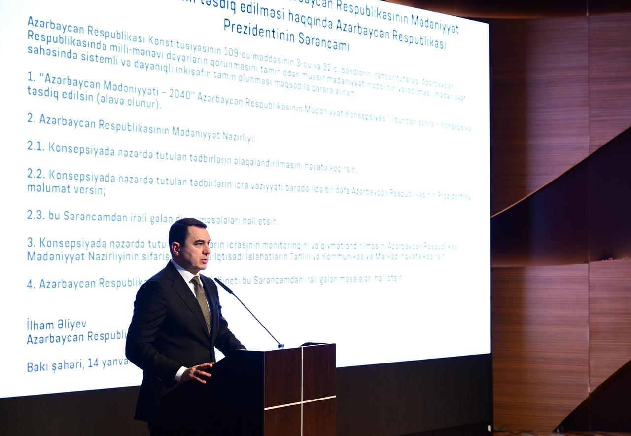 Prezident İlham Əliyevin 14 yanvar 2026-cı il tarixli Sərəncamı ilə “Azərbaycan Mədəniyyəti – 2040” Azərbaycan Respublikasının Mədəniyyət Konsepsiyası” təsdiq edilib.