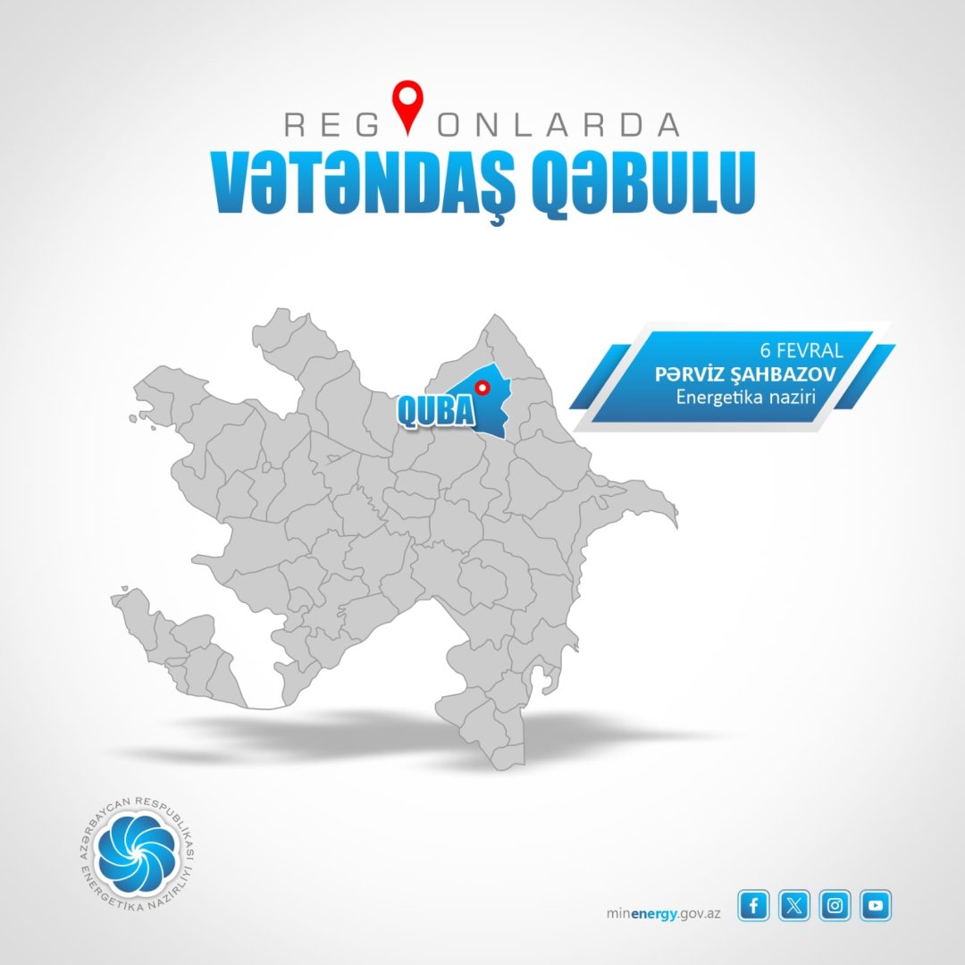 Energetika naziri Pərviz Şahbazov 06 fevral tarixində Quba, Qusar, Xaçmaz, Şabran, Siyəzən rayonlarından olan vətəndaşları qəbul edəcək.