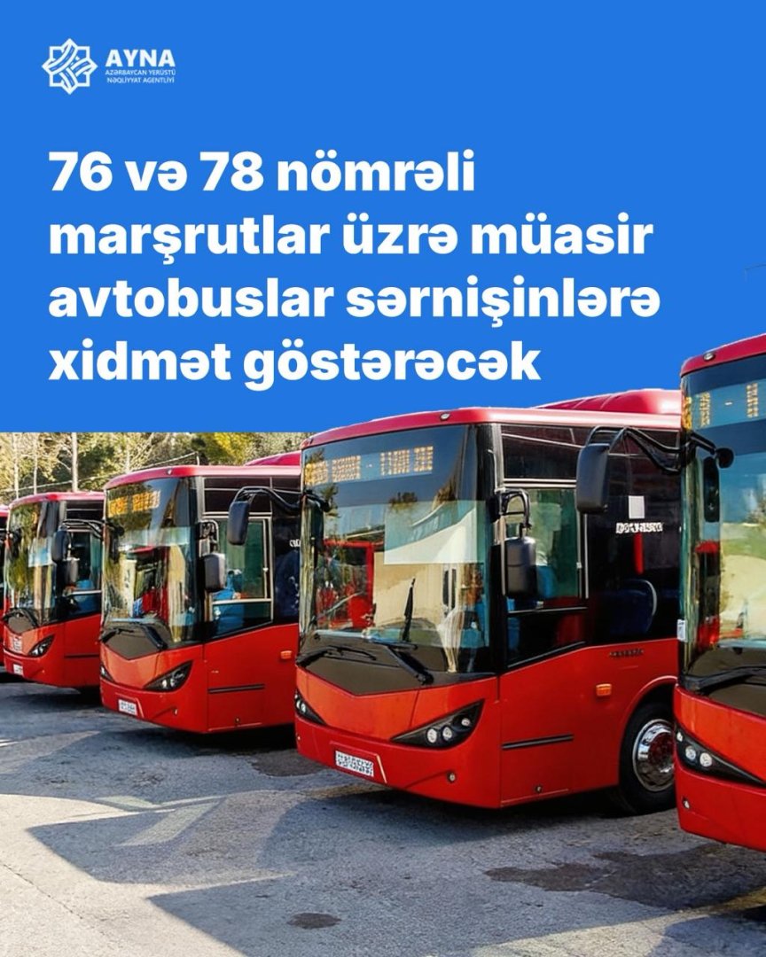 Azərbaycan Yerüstü Nəqliyyat Agentliyi (AYNA) sərnişindaşıma sahəsində xidmət keyfiyyətinin yüksəldilməsi və vətəndaş məmnuniyyətinin artırılması məqsədilə daha 2 müntəzəm marşrut xəttinə müasir və komfortlu avtobuslar cəlb edir.