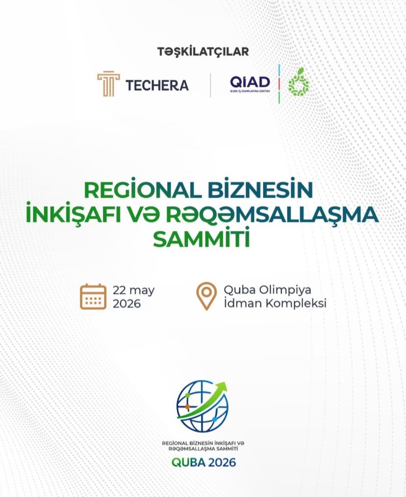 TECHERA və QİAD-ın birgə təşkilatçılığı ilə Quba şəhərində regionun biznes və rəqəmsal inkişafına həsr olunan sammit baş tutacaq.