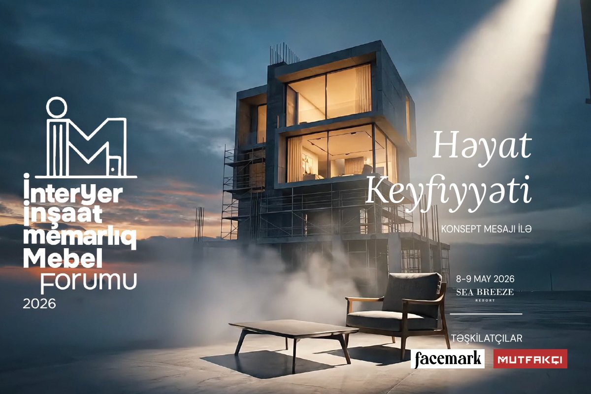 “Facemark” və “Mutfakçı” şirkətlərinin təşkilatçılığı ilə 8–9 may 2026 tarixlərində “Sea Breeze Event Hall”da interyer, inşaat, memarlıq və mebel sahələrinin aparıcı mütəxəssislərini, yenilikçi şirkətlərini və peşəkar icmasını bir araya gətirəcək İnteryer İnşaat Memarlıq Mebel Forumu 2026 keçiriləcək.
