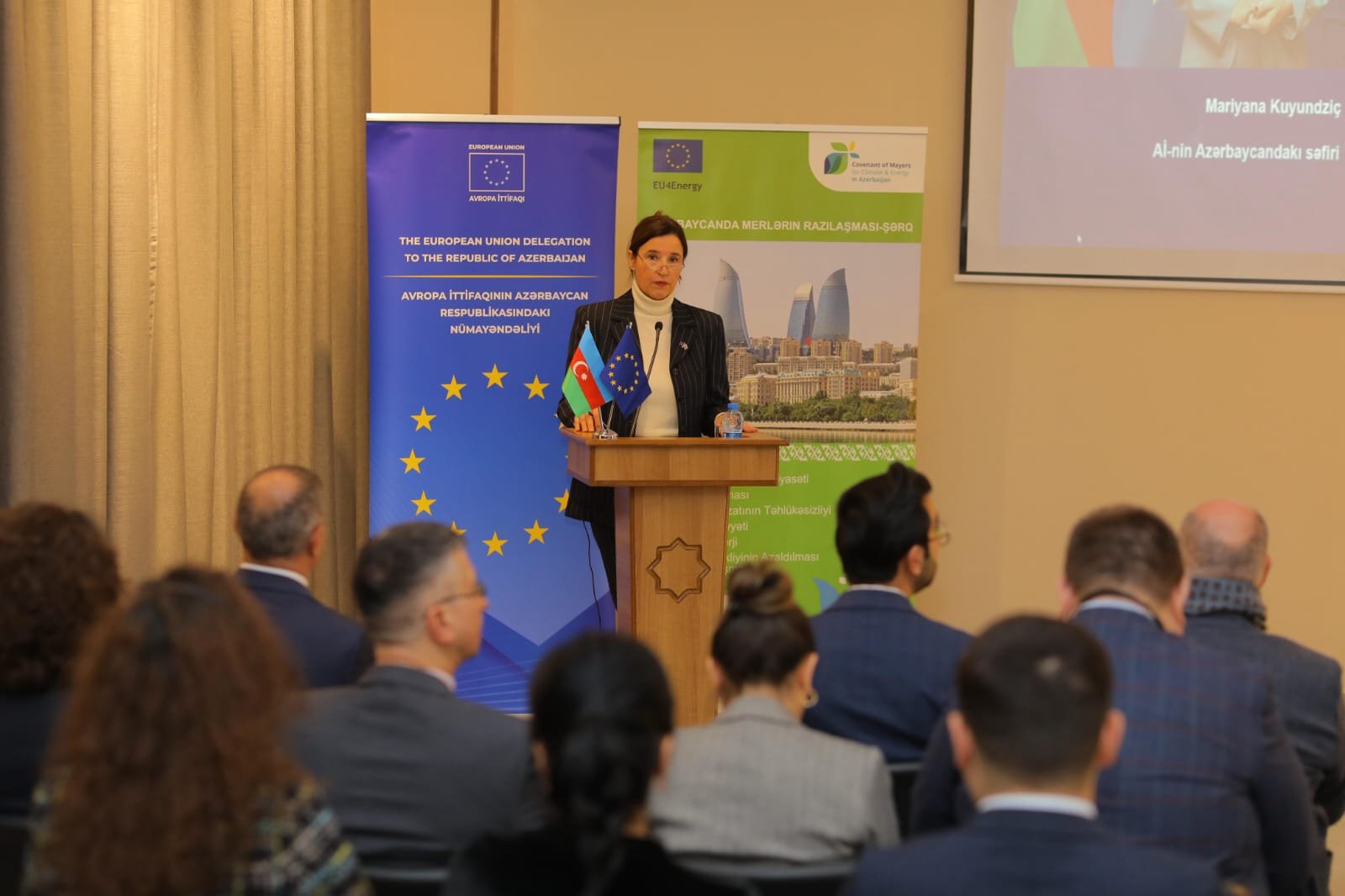 Tədbiri açılış nitqi ilə başlayan Aİ-nin Azərbaycandakı səfiri Marijana Kujundzic iqlim və enerji sahəsində konkret nəticələrin əldə olunmasında şəhərlərin rolunu vurğulayıb və bələdiyyələri təşəbbüsə qoşulmağa dəvət edib.
