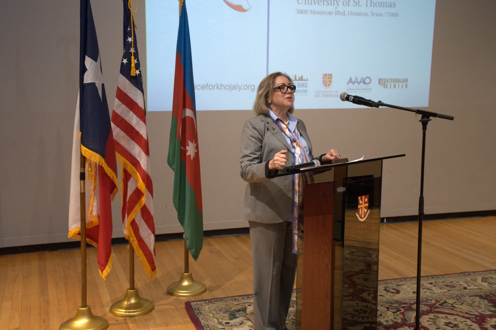 Hyuston Qardaşlaşmış Şəhərlər Assosiasiyasının rəhbəri İradə Axundova Xocalı soyqırımının Azərbaycan tarixinin ən qanlı və faciəli səhifələrindən biri olduğunu vurğulayıb, bu dəhşətli hadisənin mahiyyəti və tarixi faktları barədə ətraflı məlumat verib.