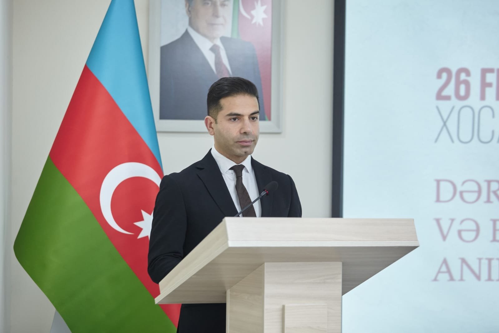 Açılış nitqi ilə çıxış edən Komitə sədrinin müavini Dövlətxan Dövlətxanov 1992-ci ilin fevralın 25-dən 26-na keçən gecə dinc əhaliyə qarşı törədilən Xocalı soyqırımının beynəlxalq humanitar hüququn norma və prinsiplərinin kobud şəkildə pozulması ilə müşayiət olunan ağır cinayət kimi tarixə düşməsini vurğulayıb. O, Ali Baş Komandan cənab İlham Əliyevin rəhbərliyi ilə qazanılmış Şanlı Zəfər nəticəsində ölkəmizin ərazi bütövlüyü və suverenliyinin tam bərpa edildiyini, Xocalıda müharibə cinayətləri törətmiş şəxslərin məsuliyyətə cəlb olunduğunu qeyd edib.