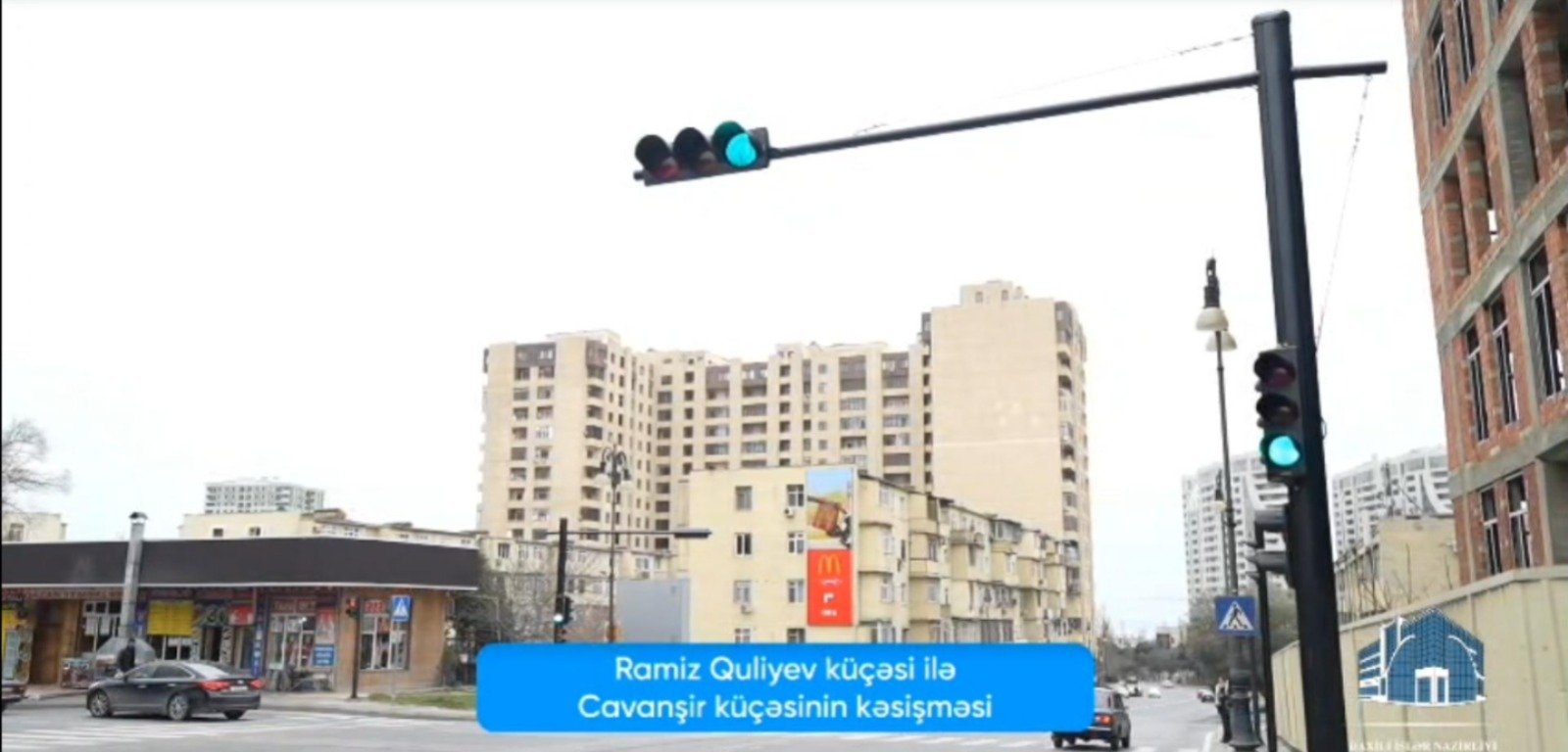 Ramiz Quliyev küçəsi ilə Cavanşir küçəsinin kəsişməsində piyadaların və nəqliyyat vasitələrinin hərəkətini tənzimləmək üçün yeni svetoforlar quraşdırılıb.