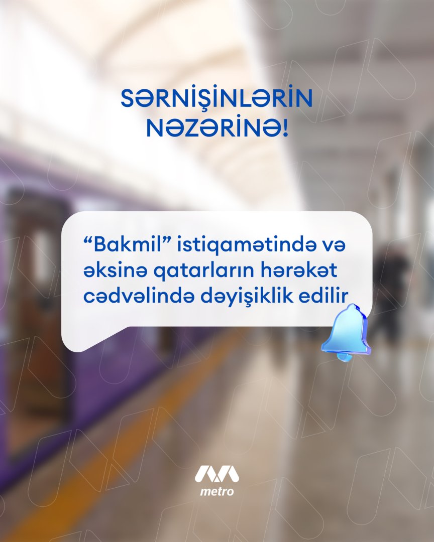 TurkicWorld Bakı Metropoliteninə istinadən xəbər verir ki, əsas dəyişikliklər "Bakmil" stansiyası istiqamətində və əksinə hərəkət edən qatarların cədvəlində öz əksini tapacaq.
