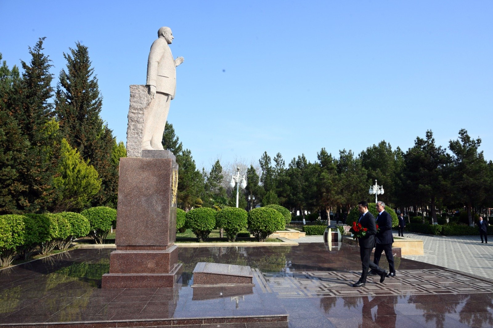 Qəbuldan əvvəl mədəniyyət naziri Adil Kərimli və Hacıqabul Rayon İcra Hakimiyyətinin başçısı Sevindik Hətəmov Hacıqabul şəhərində ucaldılmış Ümummilli Lider Heydər Əliyevin abidəsini ziyarət edərək xatirəsini ehtiramla yad ediblər.