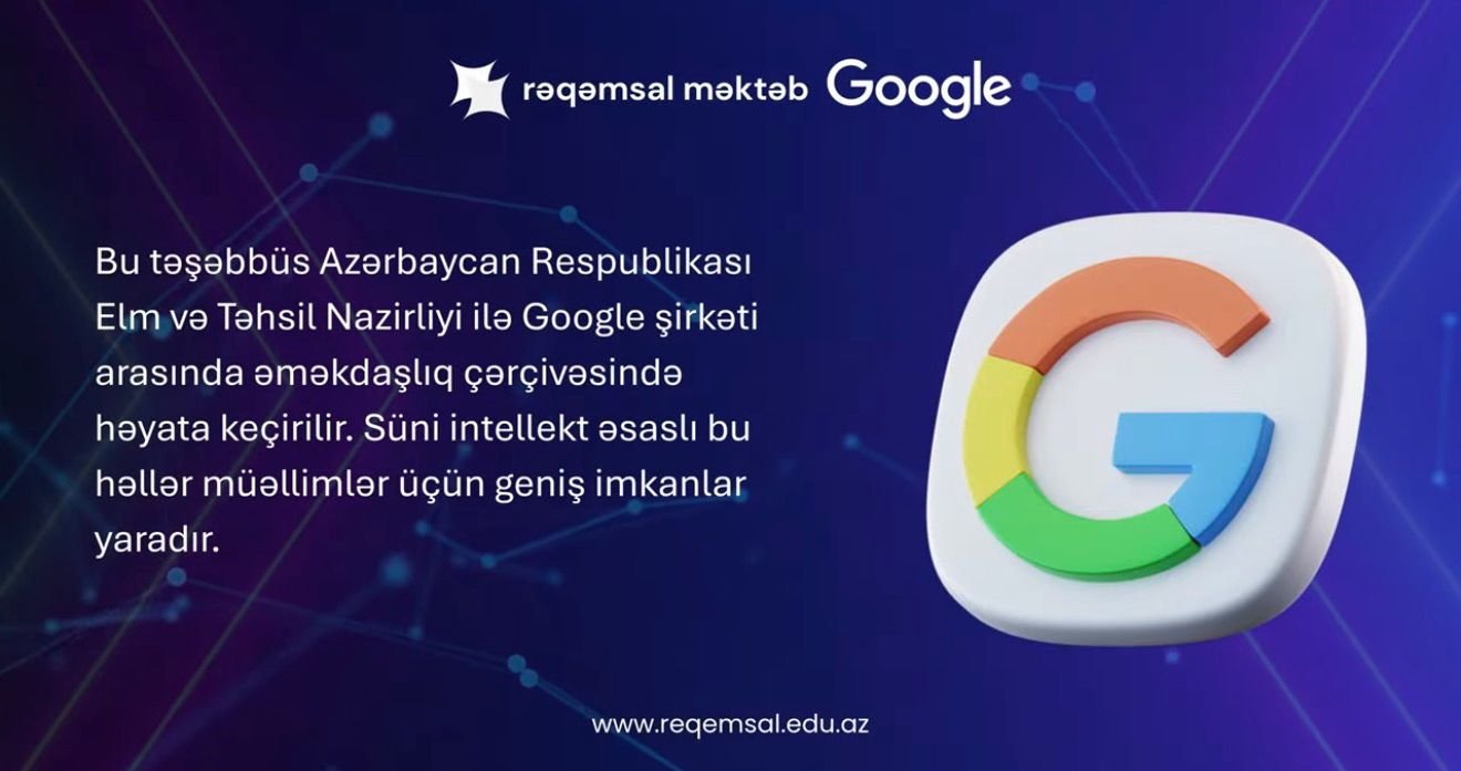 Təhsil sistemində süni intellekt həllərinin tətbiqi davam etdirilir. Elm və Təhsil Nazirliyi ilə “Google” şirkəti arasında qurulan əməkdaşlıq çərçivəsində “Rəqəmsal məktəb” platformasında müəllimlər üçün yeni imkanlar yaradılıb.