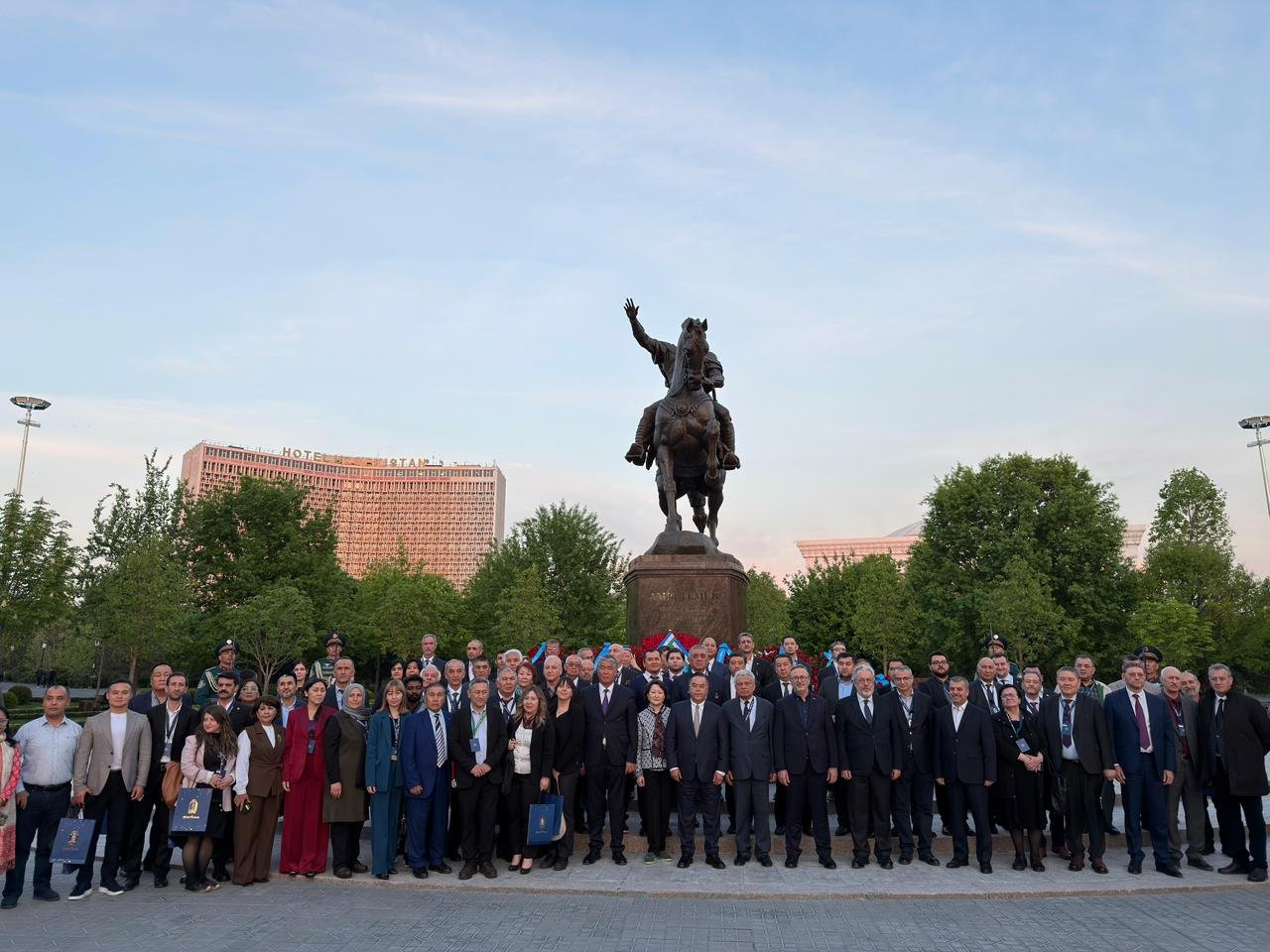 Tədbir çərçivəsində konfrans iştirakçıları Əmir Teymurun abidəsi önünə gül dəstələri qoyaraq onun xatirəsini dərin ehtiramla yad ediblər.