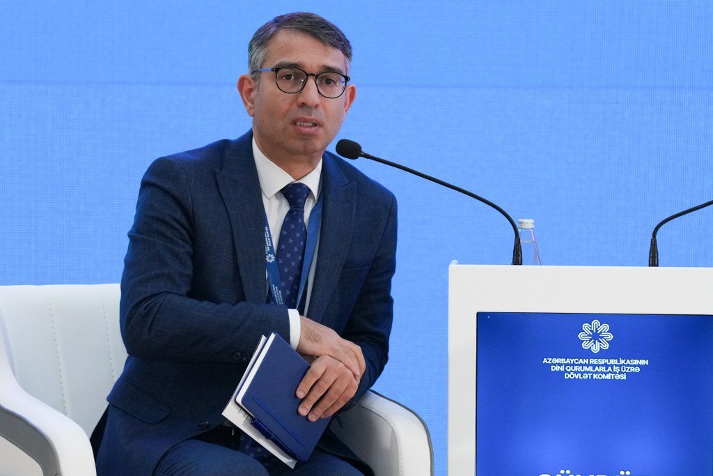 AMEA-nın akademik Ziya Bünyadov adına Şərqşünaslıq İnstitutunun direktor müavini, Dini Qurumlarla İş üzrə Dövlət Komitəsi yanında fəaliyyət göstərən İctimai Şuranın sədri, fəlsəfə üzrə fəlsəfə doktoru, dosent Elnur Mustafayev “Dövlət-din münasibətləri kontekstində tarixi-dini abidələrin mühafizəsinin əhəmiyyəti və perspektivləri” mövzusunda çıxış edib. Tarixi dini abidələrin qorunması və bərpasının milli kimliyin, mənəvi dəyərlərin və ümumbəşəri mədəni irsin saxlanılmasında mühüm rol oynadığını, eyni zamanda tolerantlıq və multikulturalizmi gücləndirdiyini deyib. Bu siyasətin həm cəmiyyətin daxili həmrəyliyini möhkəmləndirdiyini, həm də dövlətin beynəlxalq nüfuzunun artmasına və mədəniyyətlərarası dialoqun inkişafına töhfə verdiyini vurğulayıb.