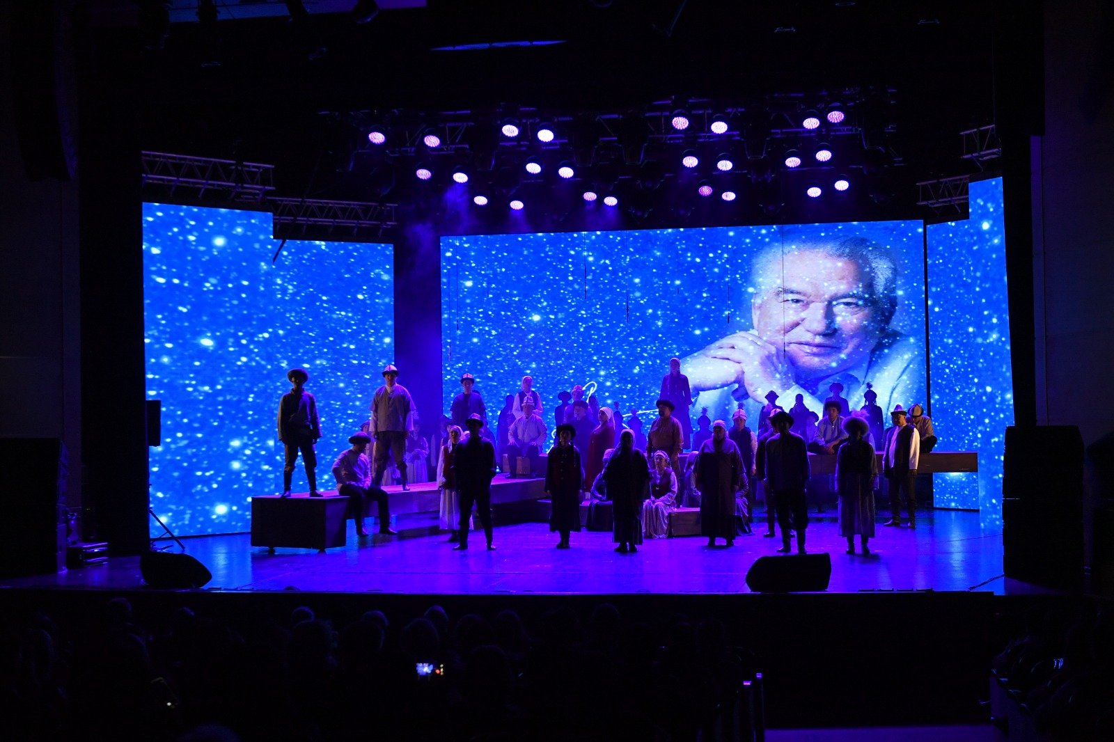 Sonra tamaşa nümayiş olunub. Musiqili səhnə əsərinin quruluşçu rejissoru Qırğızıstanın Əməkdar artisti Bolot Tentimişov, layihə rəhbəri Xalq artisti Qyrgyzbay Osmonov, libretto müəllifləri Əməkdar mədəniyyət xadimi Zayidin Uulu Ulan, Əməkdar artist Bolot Tentimişov, bəstəkarı Əməkdar artist Murzali Jeenbayevdir.