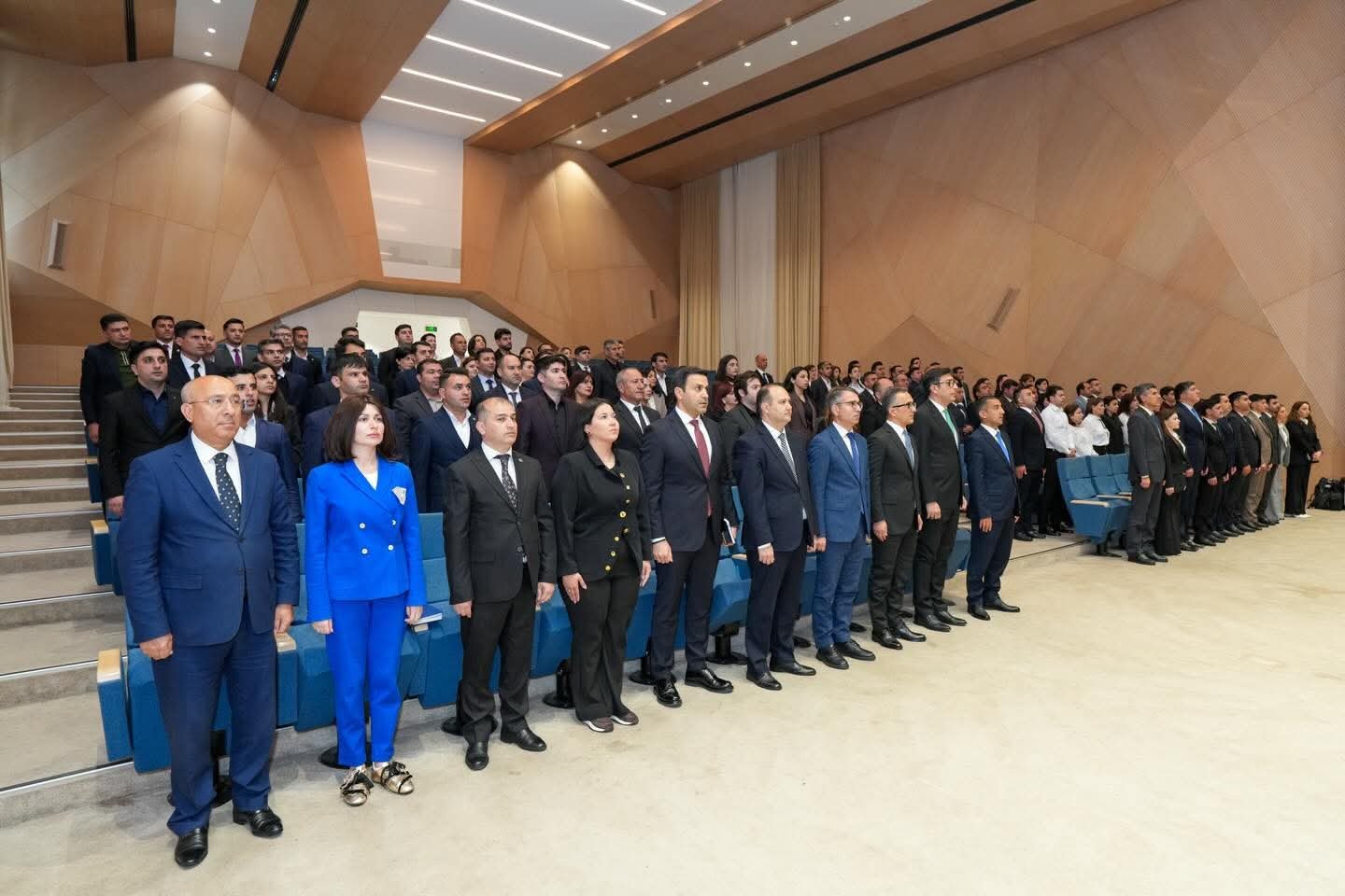 TurkicWorld xəbər verir ki, Bakı Gənclər Mərkəzində təşkil olunan tədbirdə əvvəlcə Dövlət Himni səsləndirilib. Ümummilli Lider Heydər Əliyevin və torpaqlarımızın azadlığı uğrunda canından keçmiş şəhidlərimizin əziz xatirəsi bir dəqiqəlik sükutla yad edilib. Ardınca “Azərbaycan – sülh və harmoniya məkanı” videoçarxı nümayiş olunub.