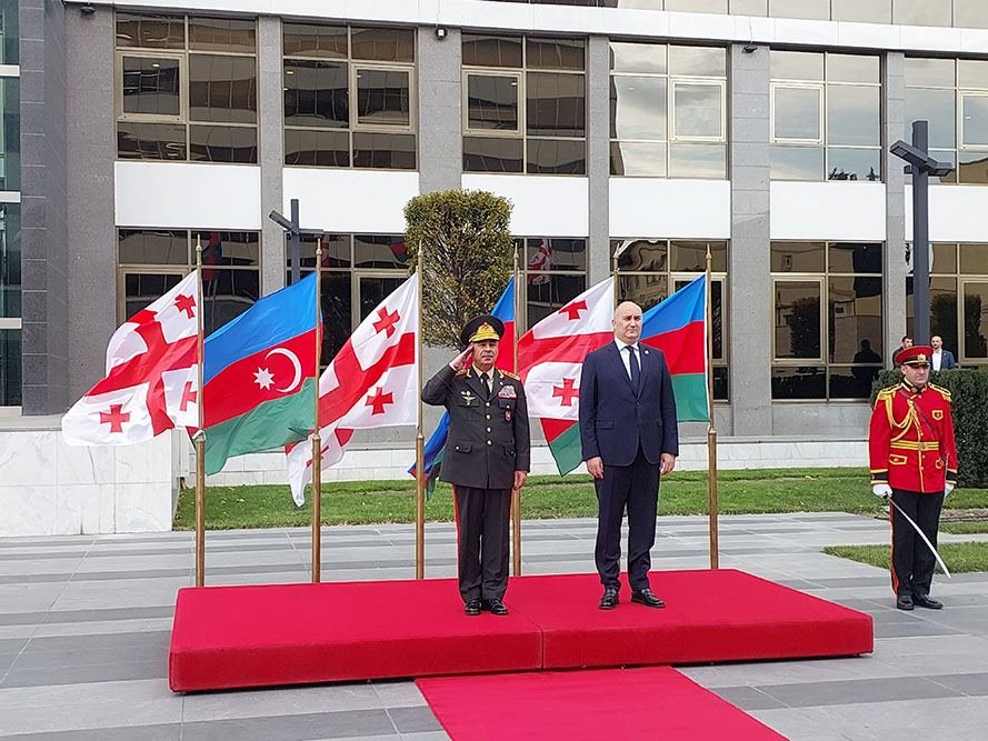Müdafiə Nazirliyindən TurkicWorld-ə verilən məlumata görə, Gürcüstan Müdafiə Nazirliyində rəsmi qarşılanma mərasimi təşkil edilib. Protokola uyğun olaraq müdafiə nazirləri Fəxri Qarovulun önündən keçib, hərbi orkestrin müşayiəti ilə hər iki ölkənin dövlət himnləri səsləndirilib.