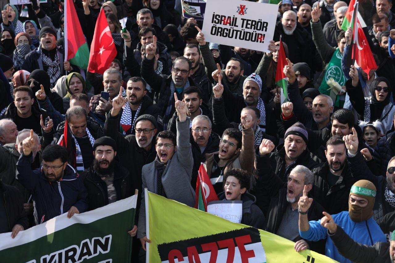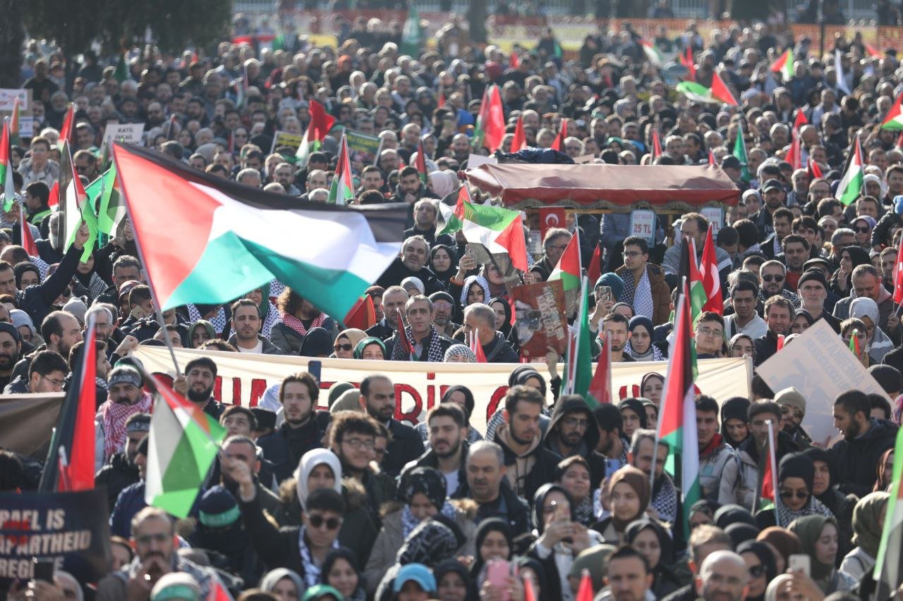 TurkicWorld xəbər verir ki, Türkiyədə təşkil edilən yürüşlərdə minlərlə insan iki aydan artıqdır Qəzzada soyqırım törədən İsrailə qarşı etiraz edib.