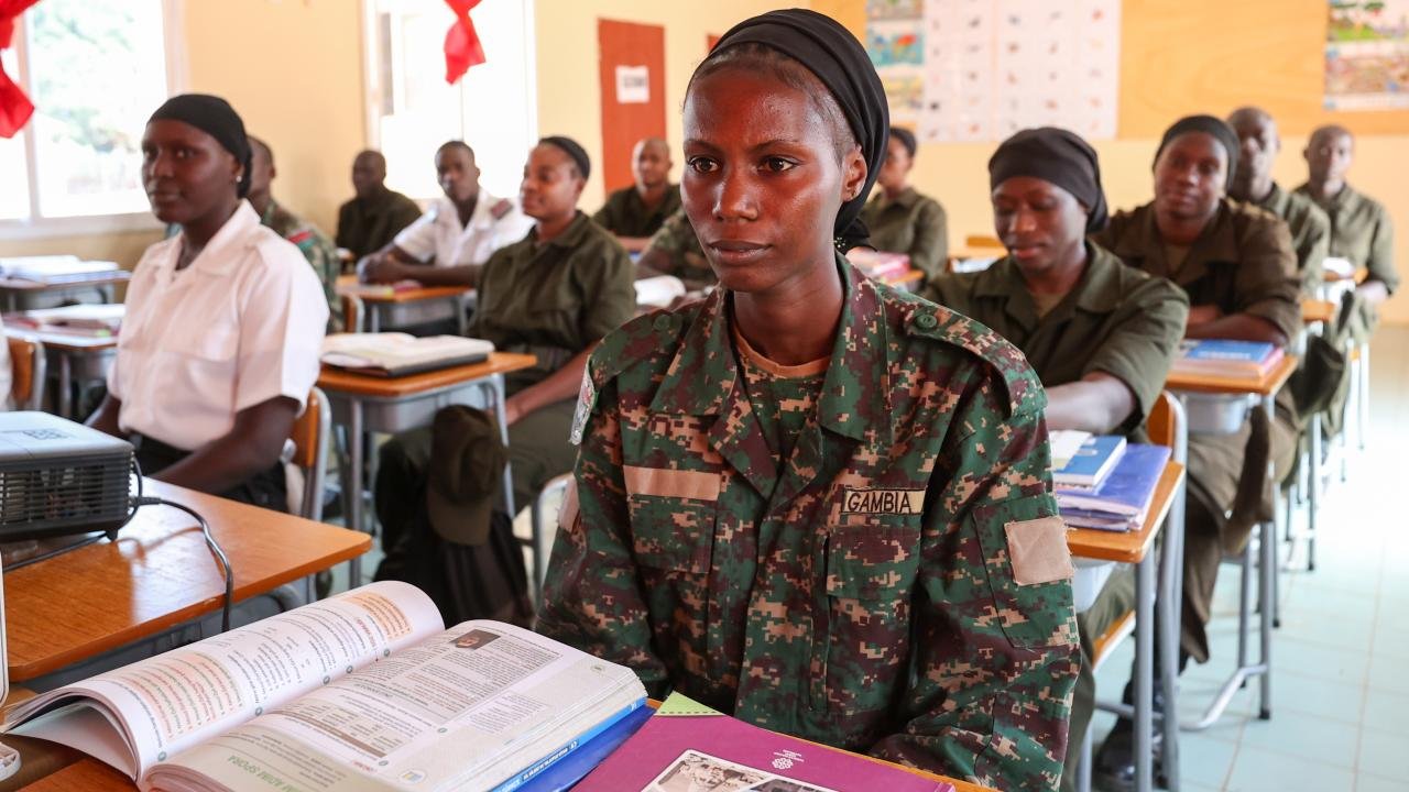 Qambiya Silahlı Qüvvələrinin şəxsi heyəti Türkiyədə hərbi təhsil almaq üçün Fəcara şəhərindəki Qambiya Silahlı Qüvvələri Təlim Məktəbində türkcə dərsləri alır.