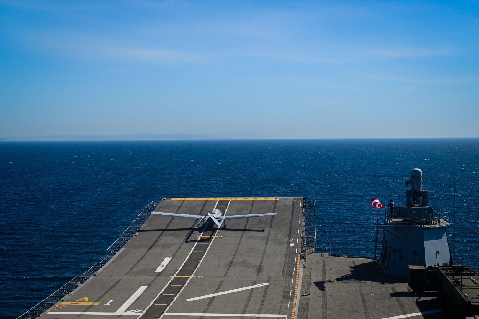 TurkicWorld xəbər verir ki, Bayraktar TB3 pilotsuz uçuş aparatı (PUA) “Qısa Uçuş Gəmisindən Tam Avtonom Kalkış və Eniş Testləri” çərçivəsində Saros körfəzində üzən TCG Anadolu gəmisinə 4 dəfə uğurla qalxaraq eniş edib.
